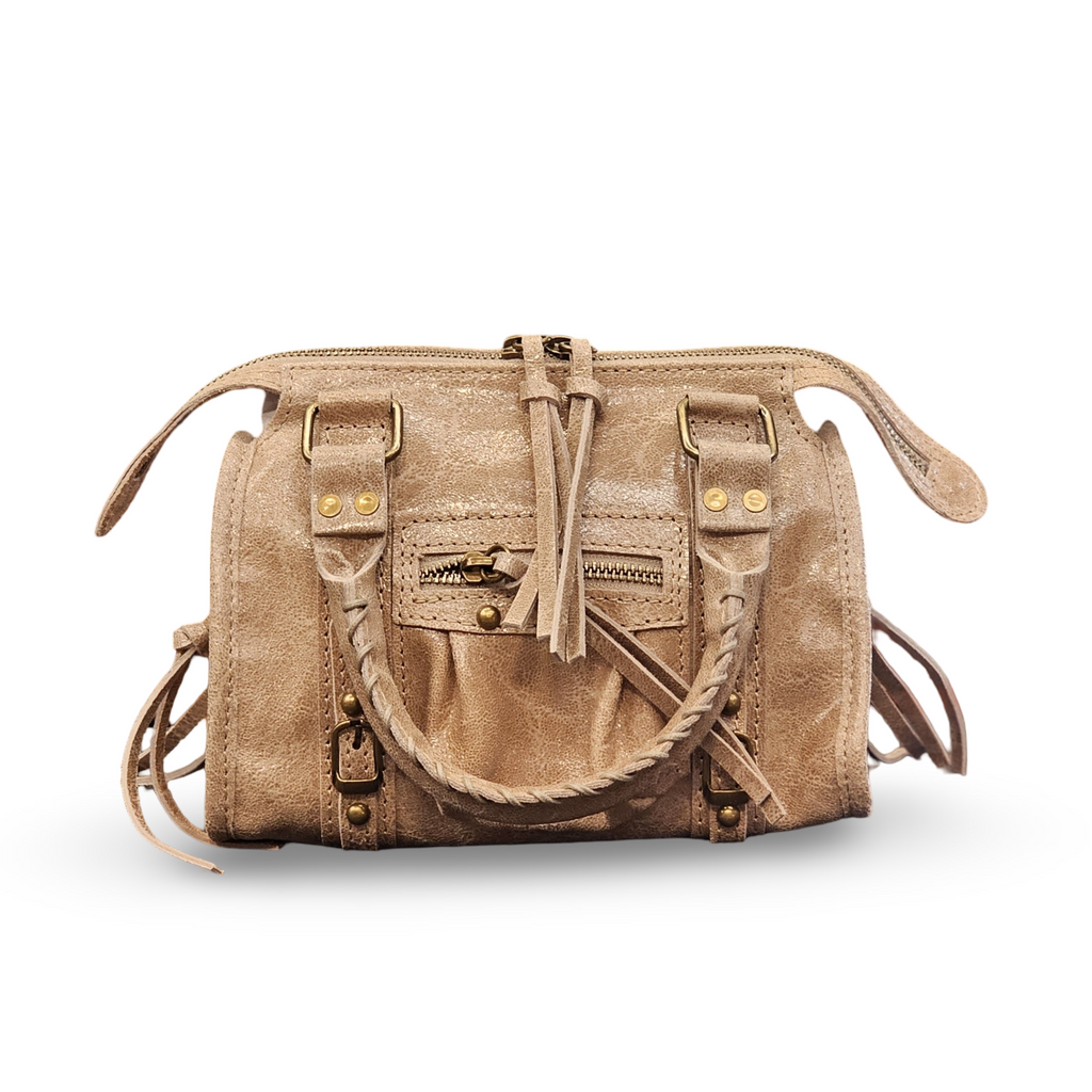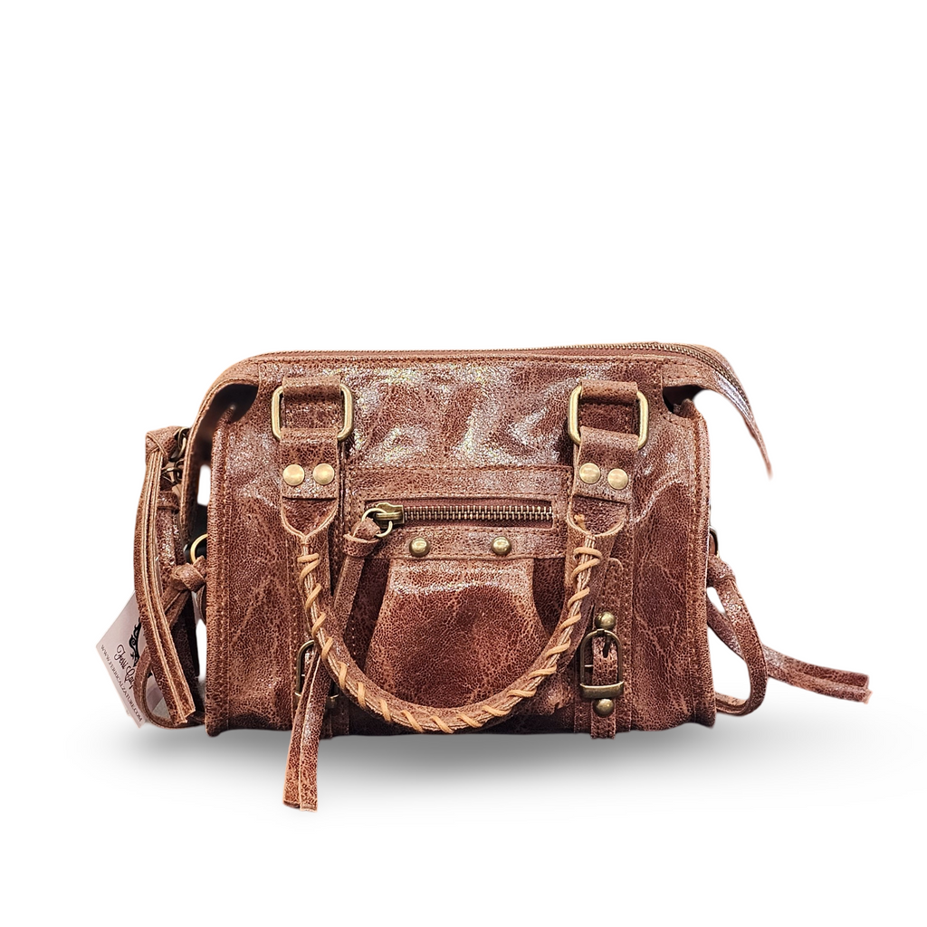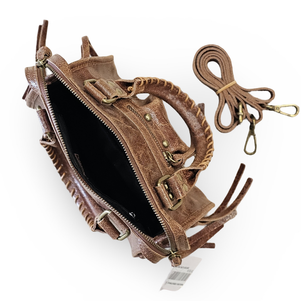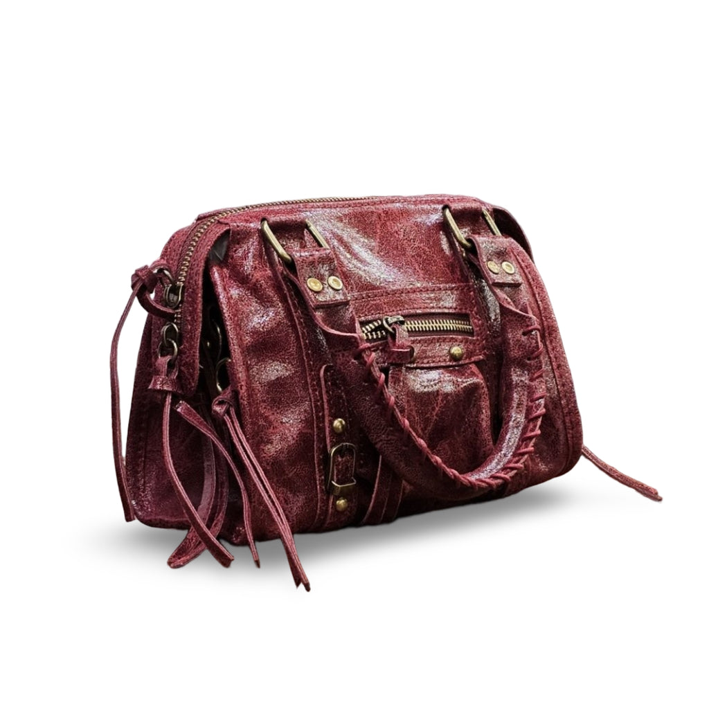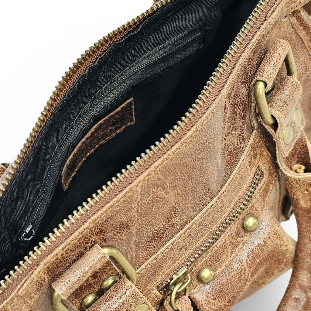Borsa in vera ppelleinvecchiata , made in Italy. Dotata di cerniera interna e tracolla regolabile. Elegante, pratica e versatile, perfetta per ogni occasione.