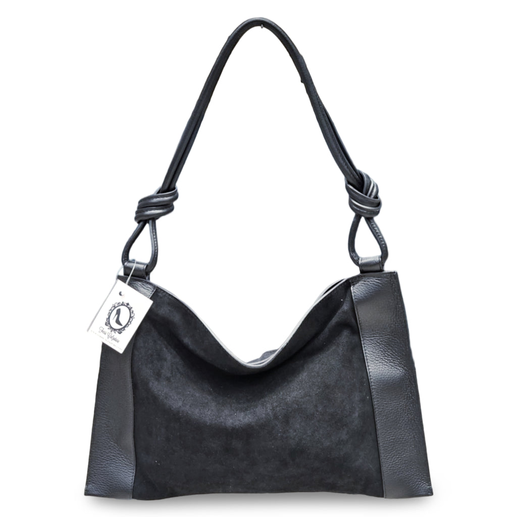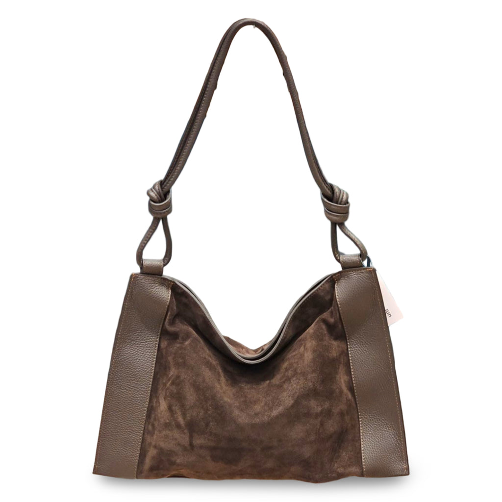 Borsa in pelle e camoscio Made in Italy, con chiusura a cerniera.