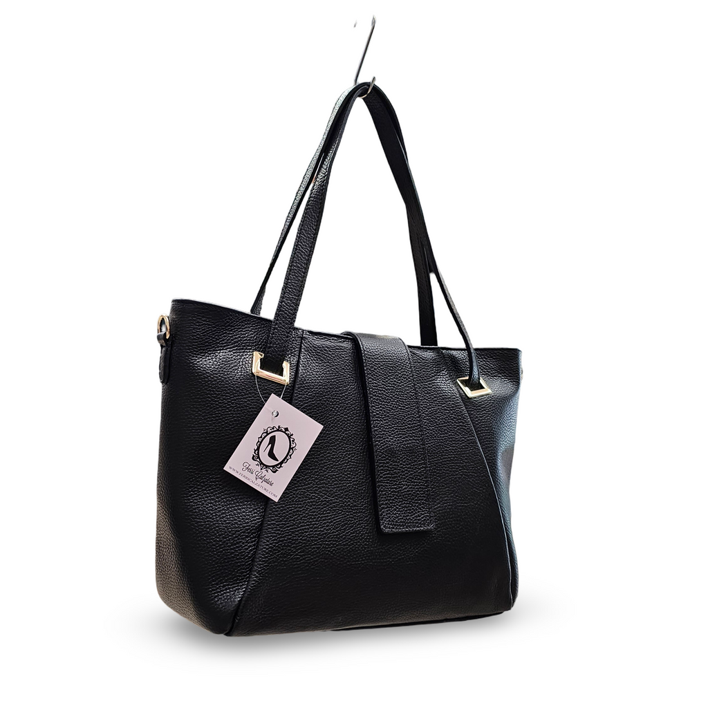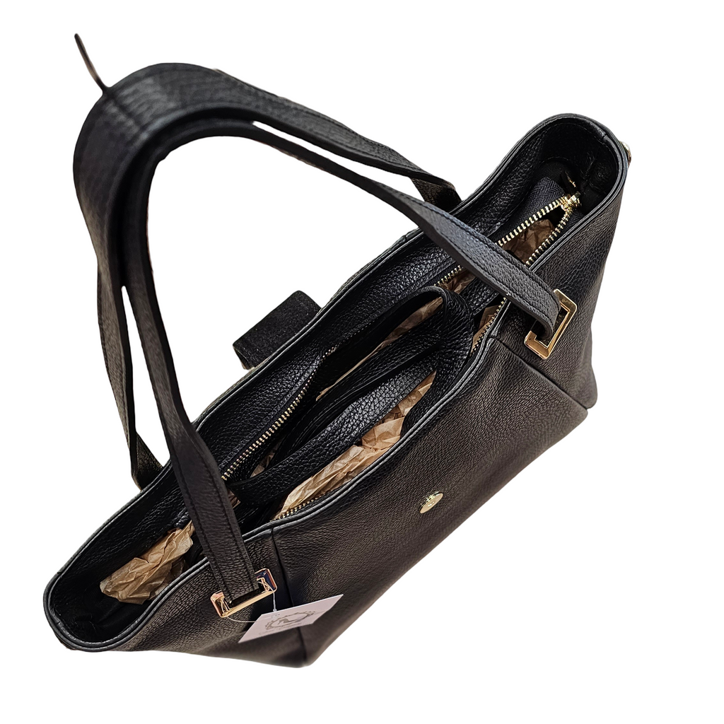 Borsa in vera pelle con manico a spalla; chiusura a cerniera, con tracolla aggiuntiva regolabile