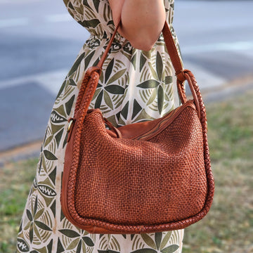 Borsa in pelle fiorentina intrecciata e conciata artigianalmente ea mano