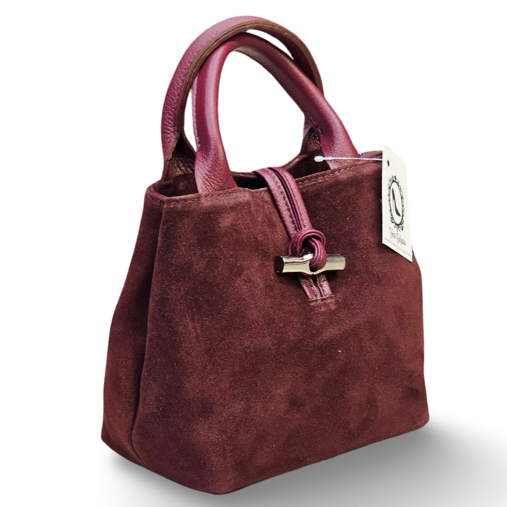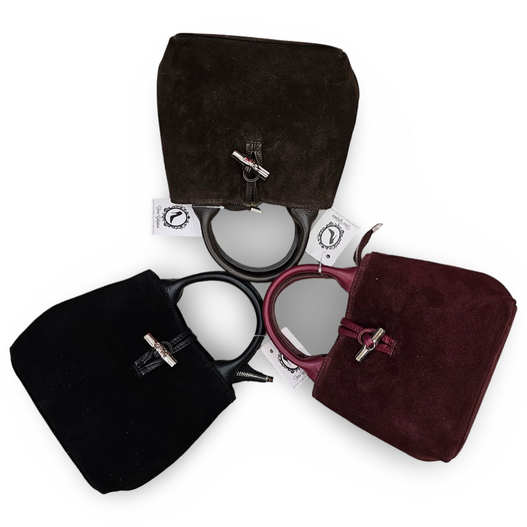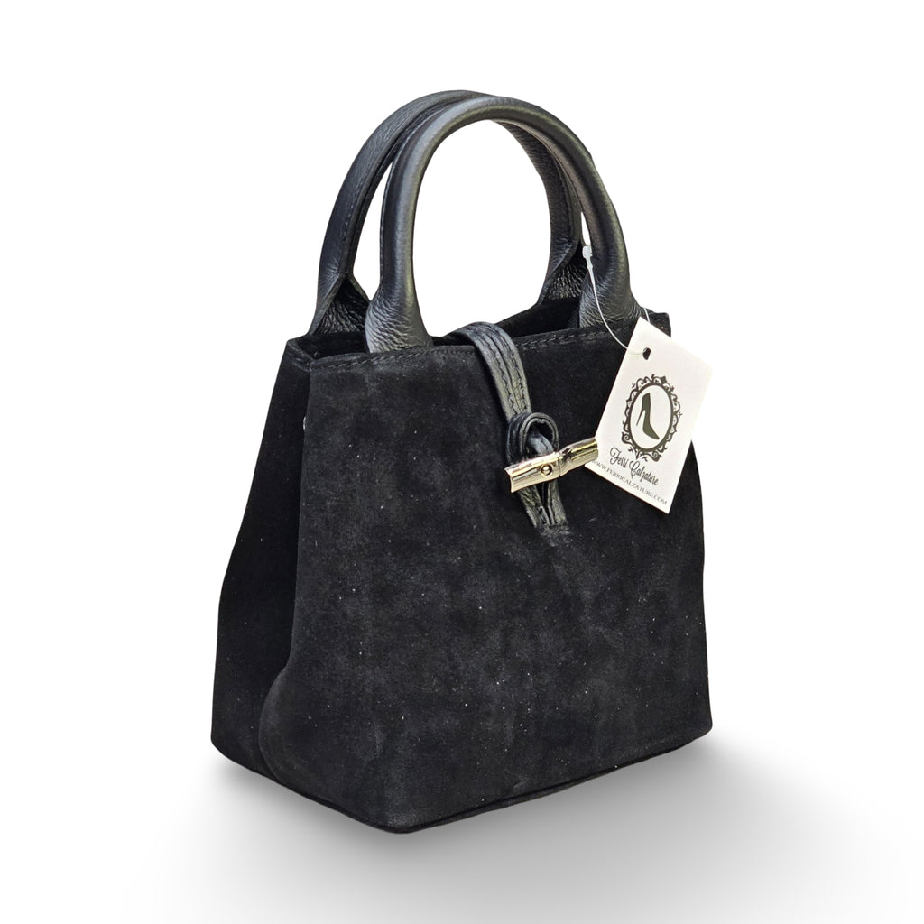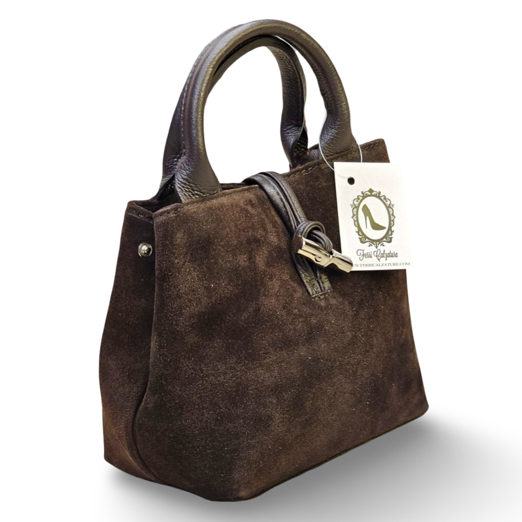 Borsa in Camoscio Made in Italy. Chiusura con alamaro, tracolla regolabile inclusa.
