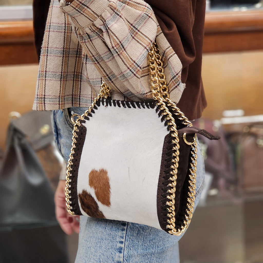 Borsa in vera pelle Made in Italy con parte anteriore in cavallino animalier. Chiusura con cerniera e tracolla in catenina inclusa. Per misure e ulteriori dettagli scrivici direttamente in chat: saremo felici di darti tutte le info!