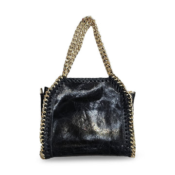 Borsa in vera pelle con tracolla corta e tracolla lunga regolabile aggiuntiva in catena; foderata e con cerniera interna. Made in Italy