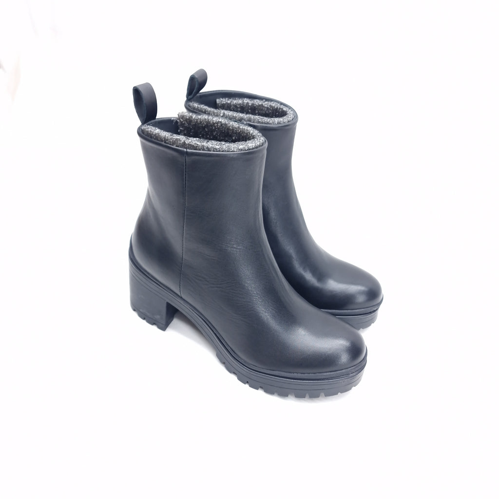 Stivaletto sportivo in vera pelle con suola in gomma, impermeabile, con carraramato da 3 cm e tacco da 8 cm