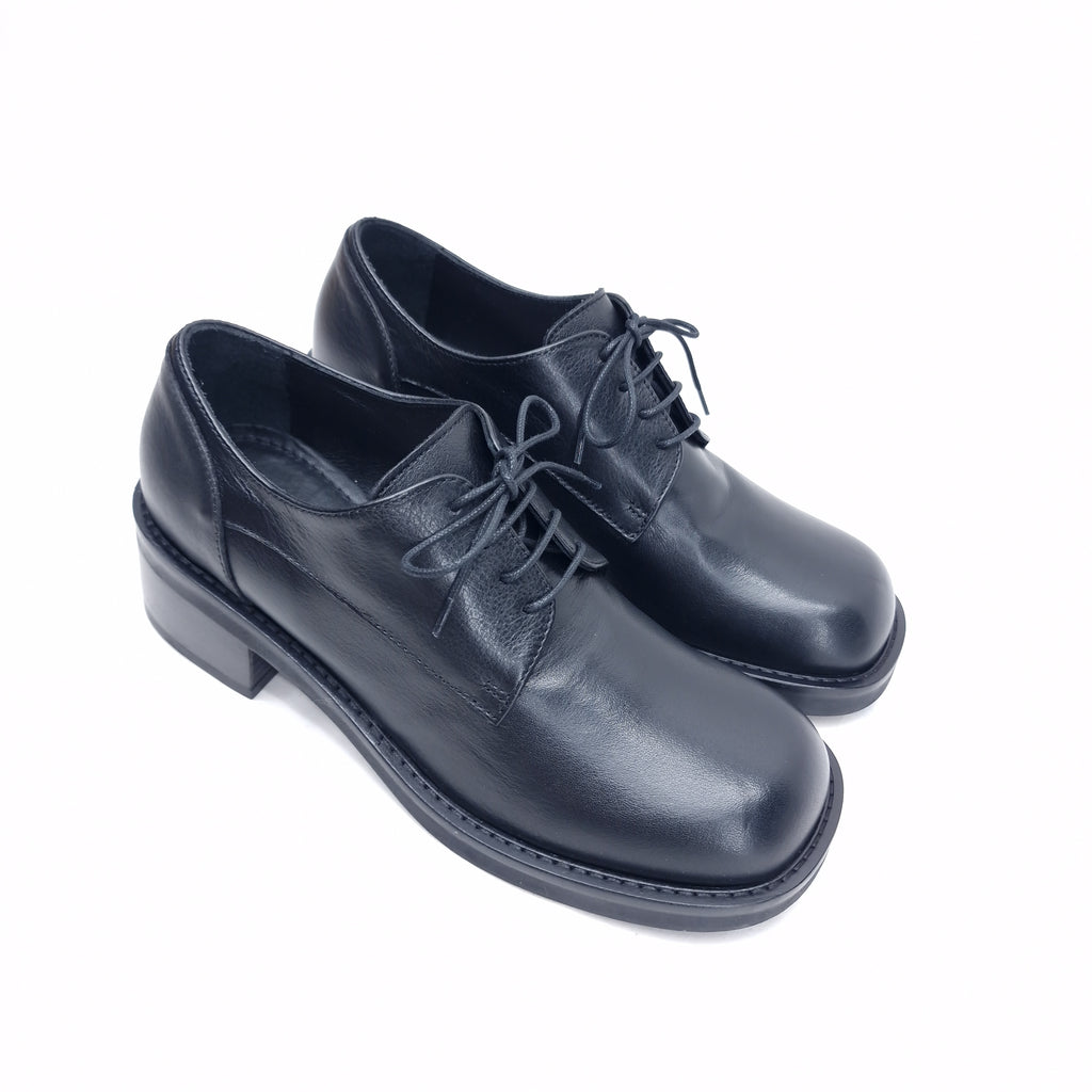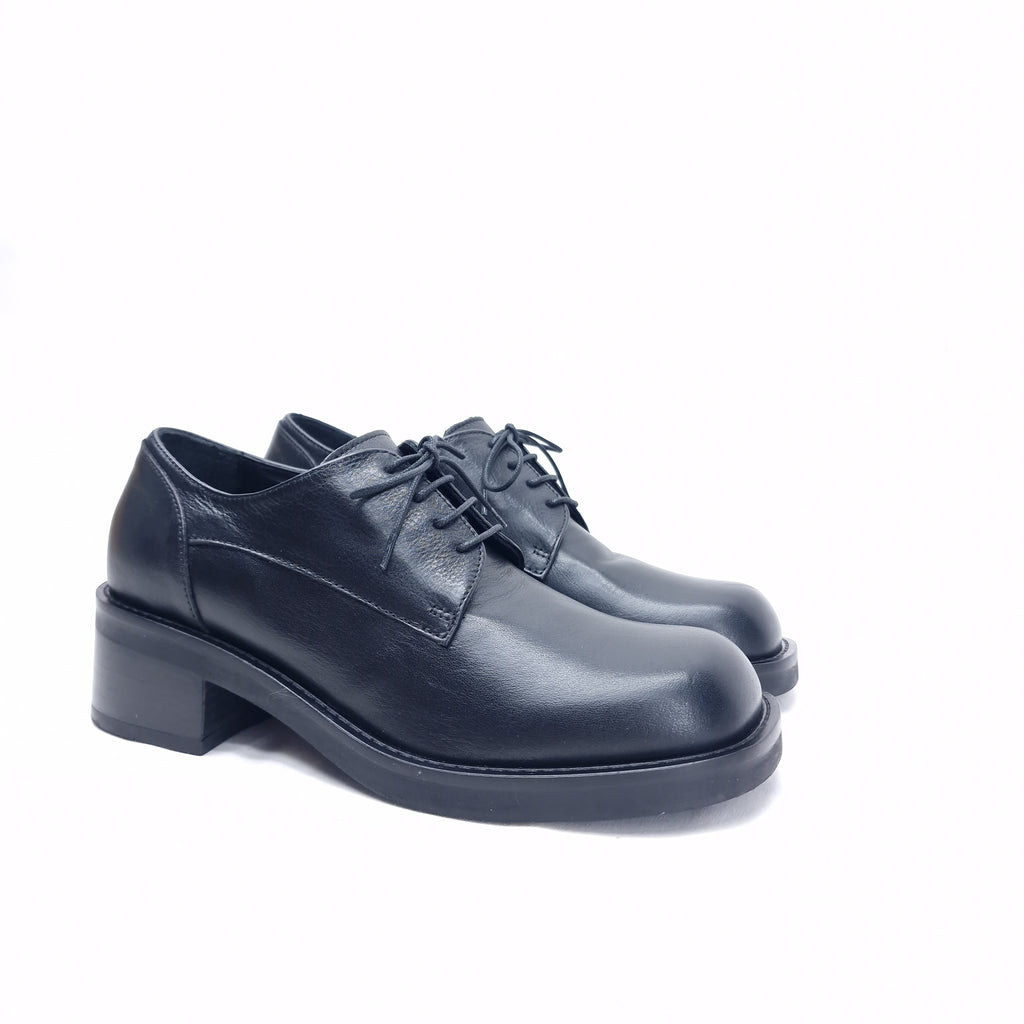 Francesina in pelle, vera pelle interna ed esterna, forma squadrata.