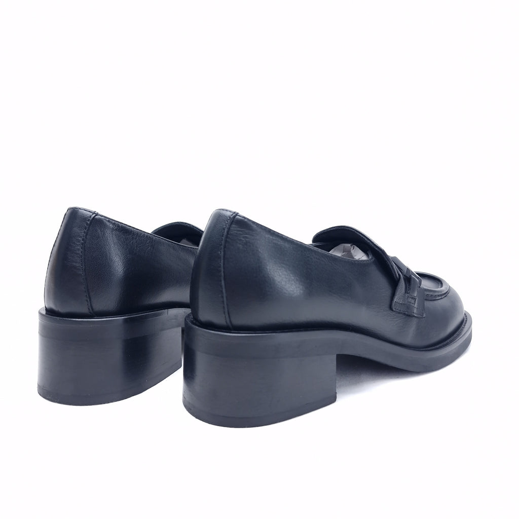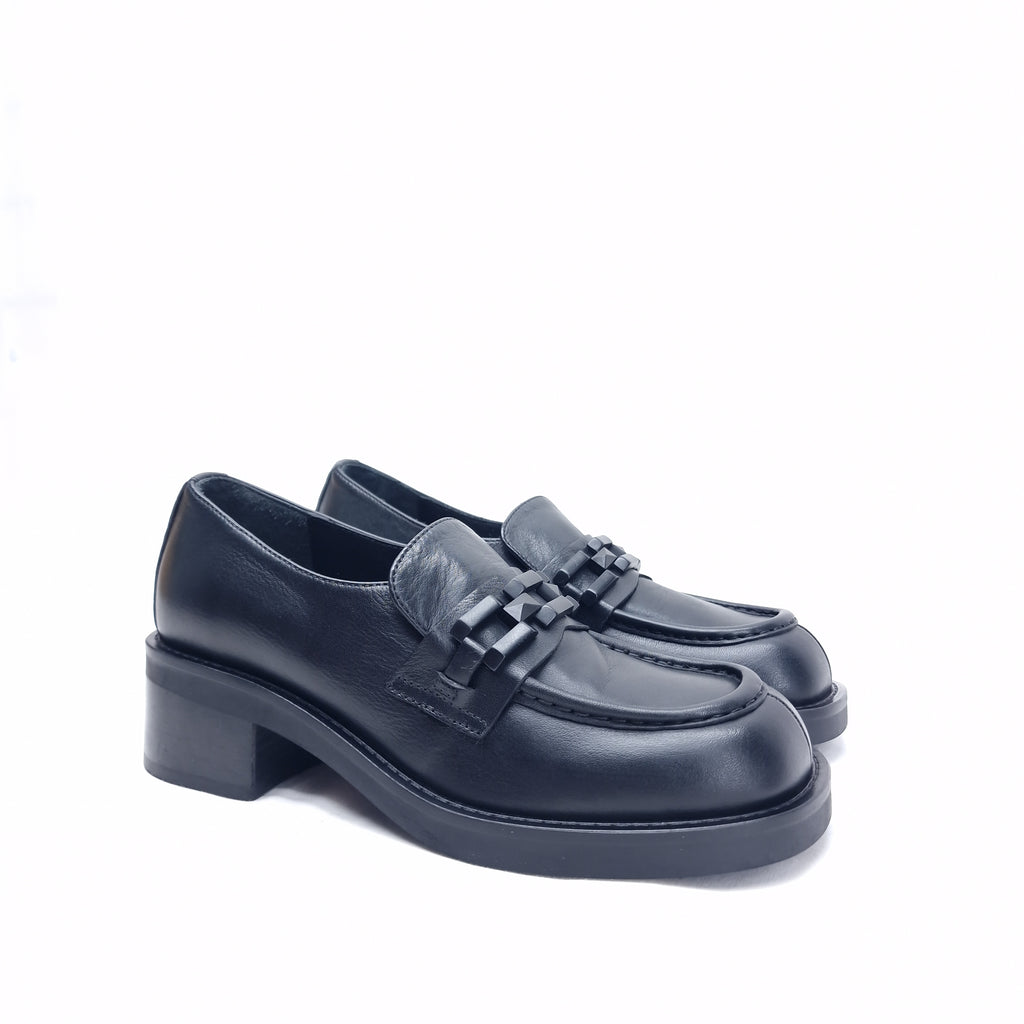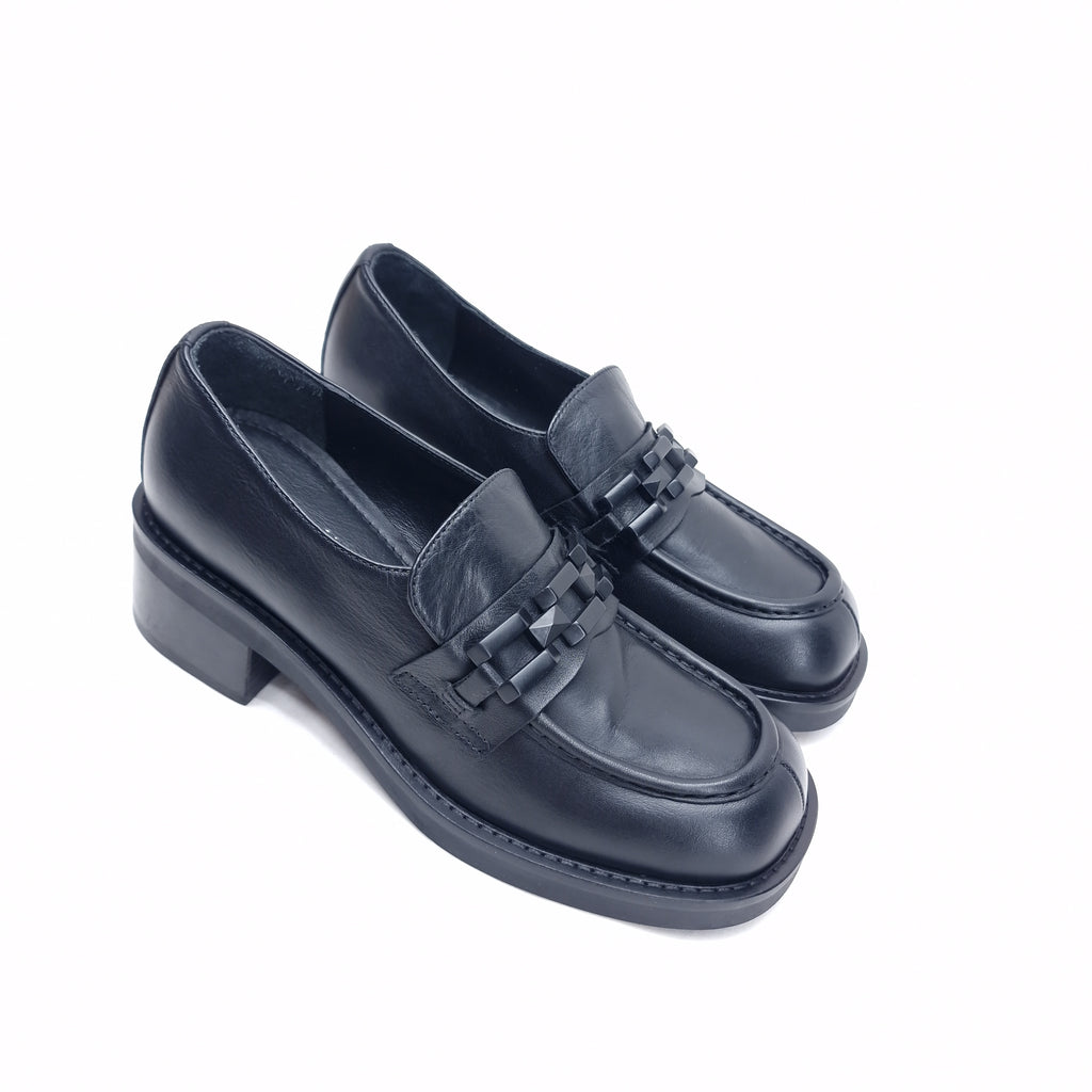 Mocassino in pelle, vera pelle interna ed esterna, forma squadrata con accessorio