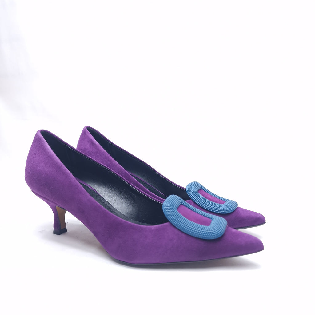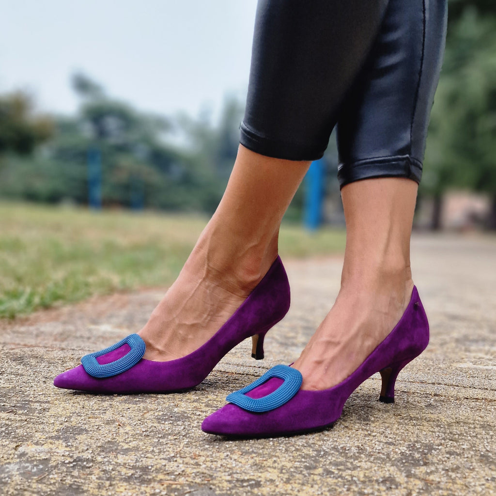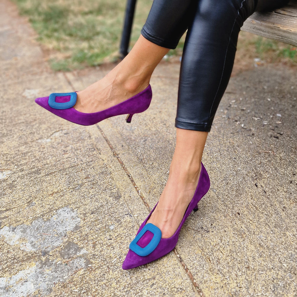 Decollètè in vera pelle interna ed esterna con accessorio in punta e tacco rivestito da 5cm; prodotto realizzato interamente in Italia da maestri artigiani, calzata regolare