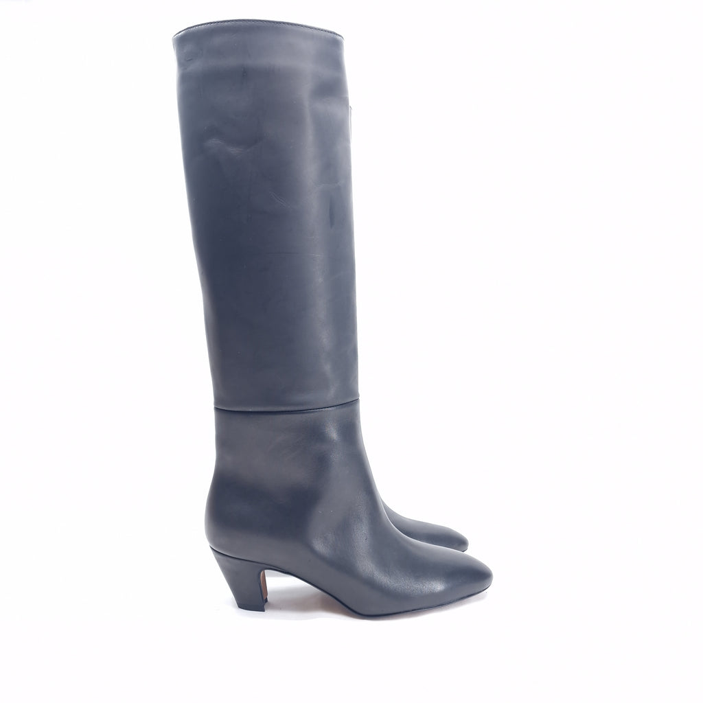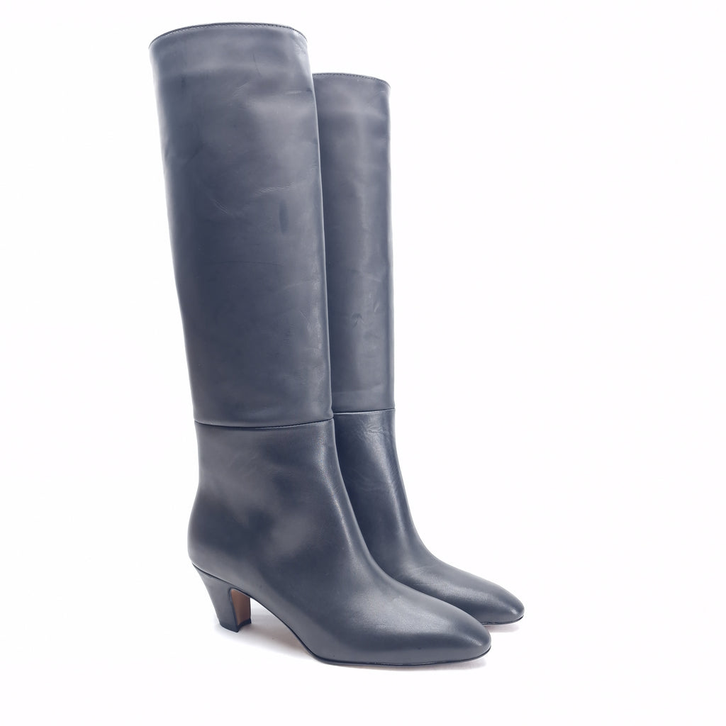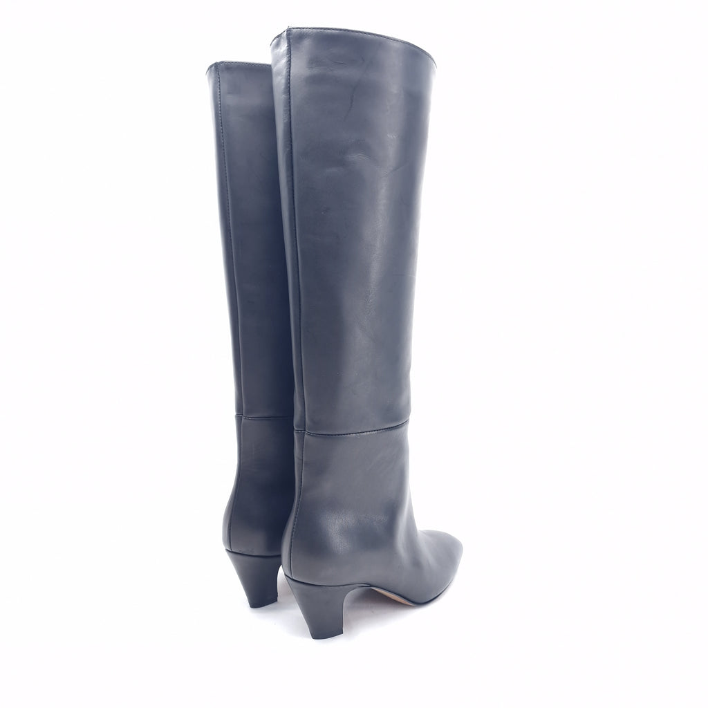 Stivale sotto al ginocchio a punta tonda in vera pelle, vera pelle con calzata a tubo regolare: particolare tacco svasato da 3 cm
