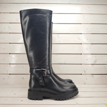 Stivale cavallerizza con fibbia laterale e fondo in gomma antiscivolo di 3.5cm, in vera pelle esterna e tessuto termico interno.