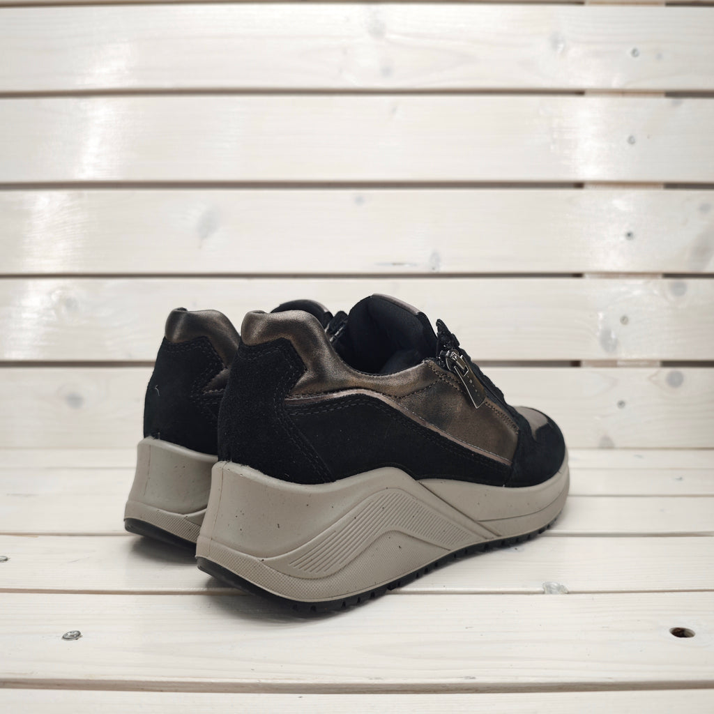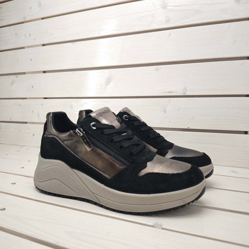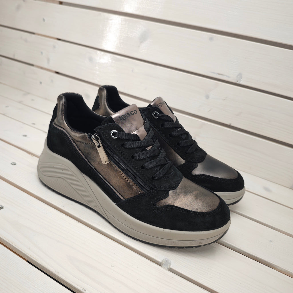 Sneaker in vera pelle e tessuto mesh con plantare estraibile