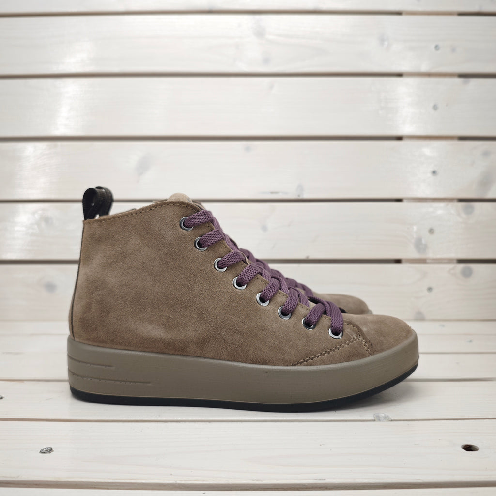 Sneaker in vera pelle e tessuto mesh con plantare estraibile