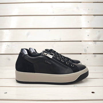 Sneaker in vera pelle e tessuto mesh con plantare estraibile