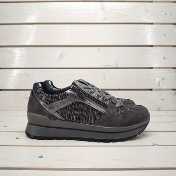 Sneaker in vera pelle e tessuto mesh con plantare estraibile