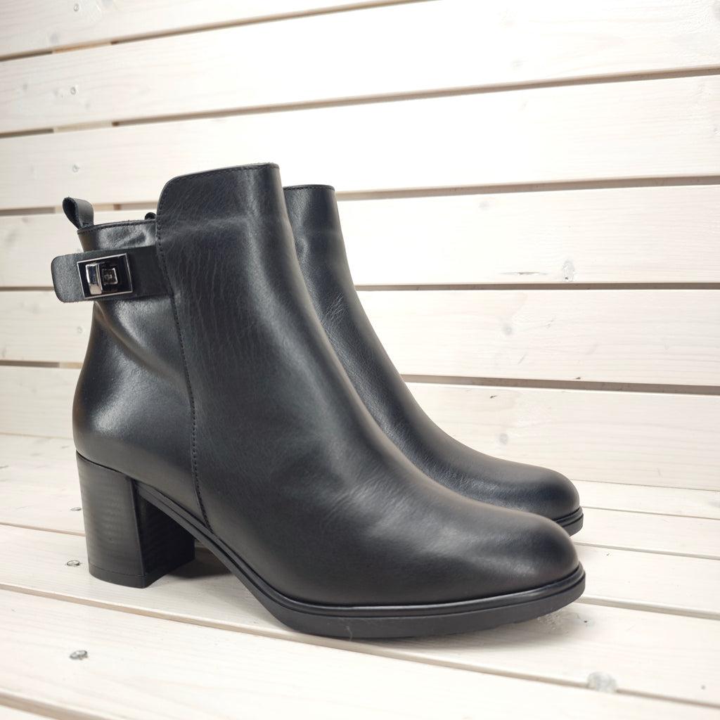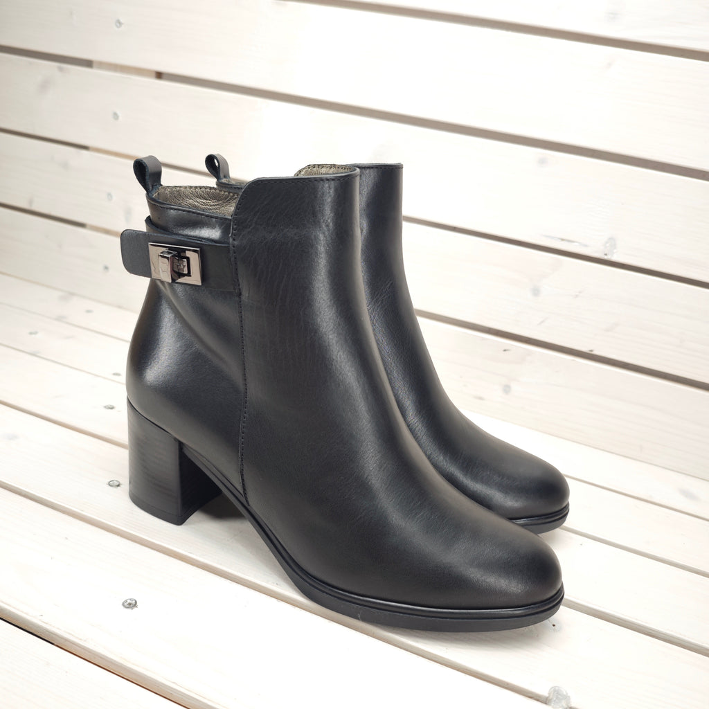 Tronchetto in morbidissima vera pelle interna ed esterna con plateau sottile in gomma e tacco da 6 cm; con cerniera interna