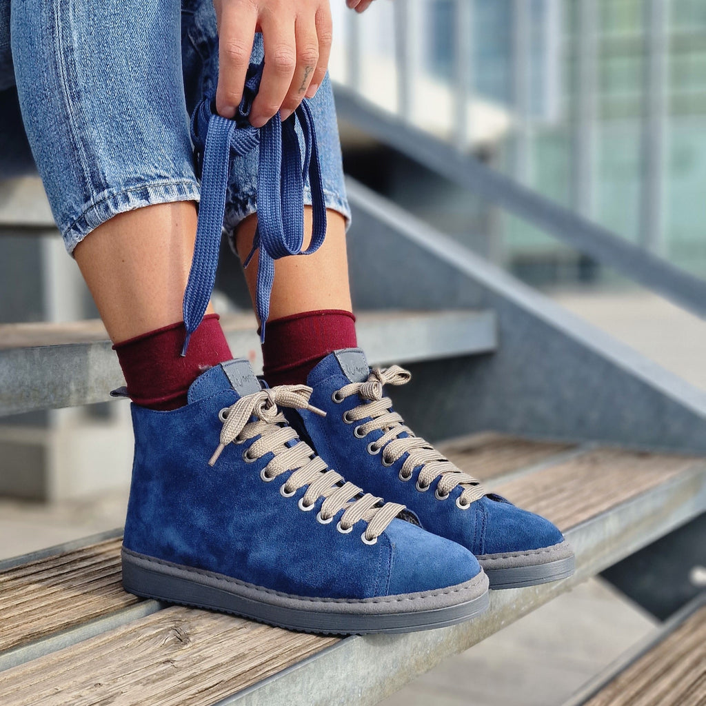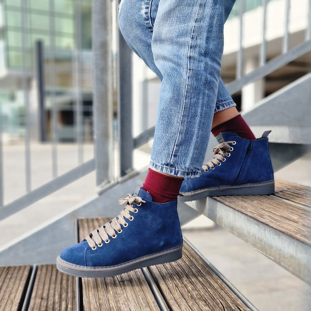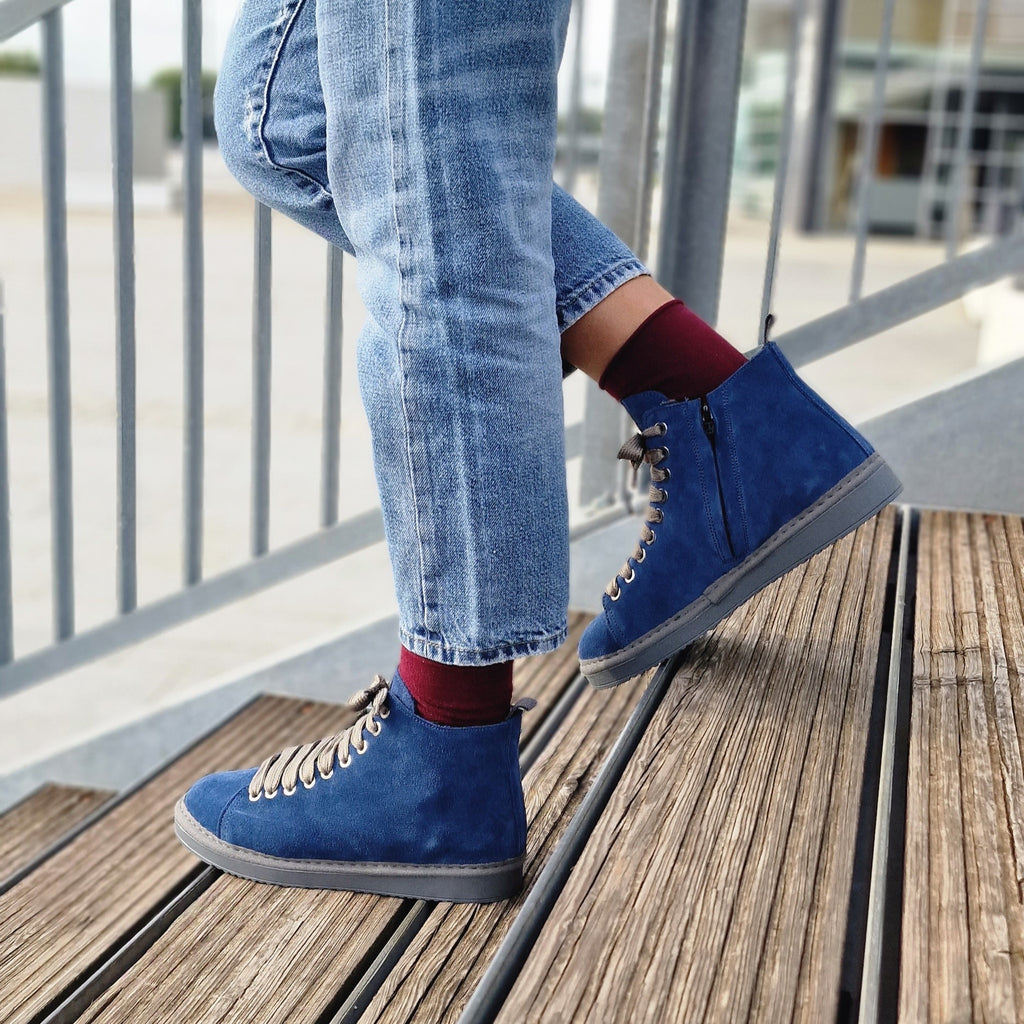 Sneaker in vero camoscio con interno in peletto e cerniera laterale per favorire la calzata; plantare estraibile, calzata regolare
