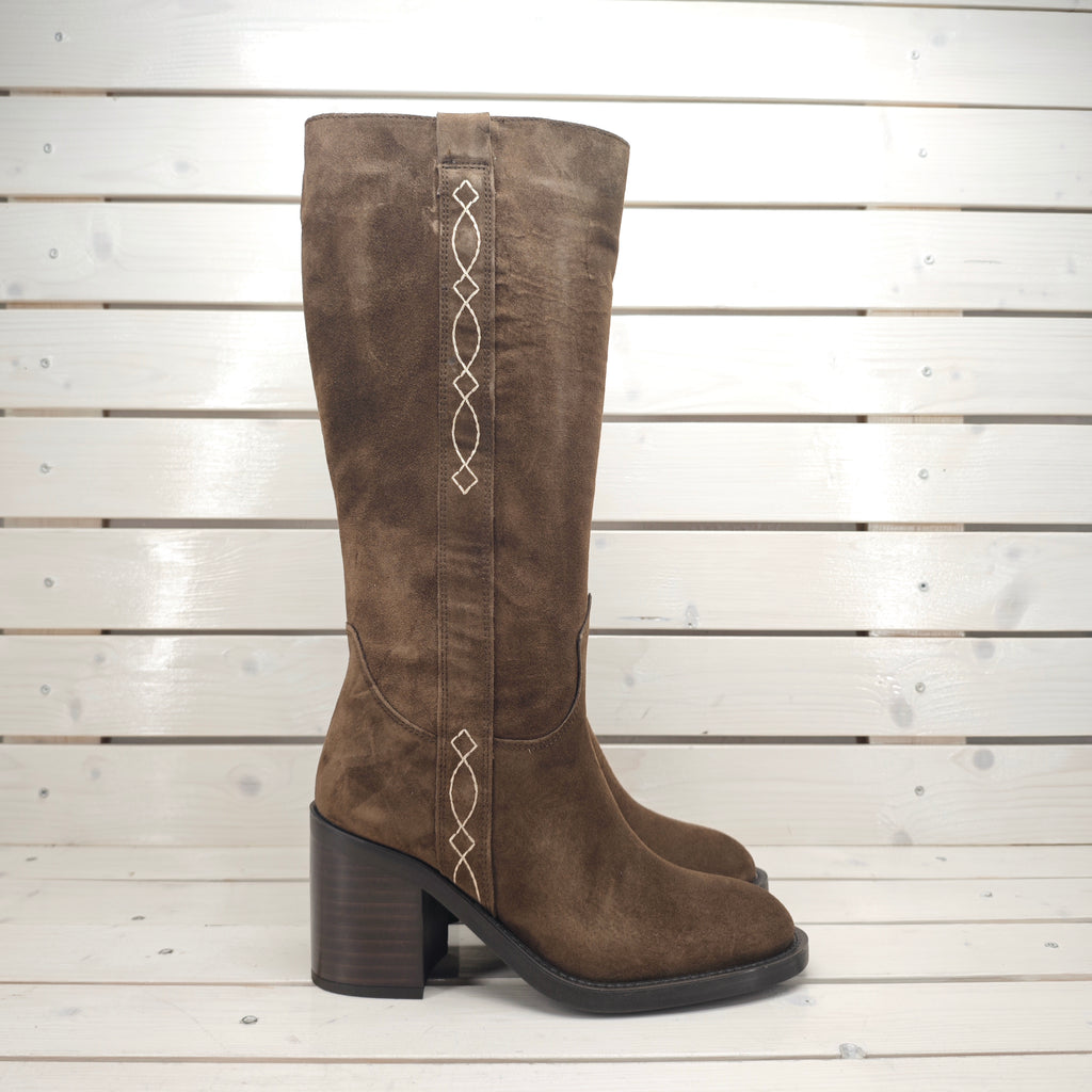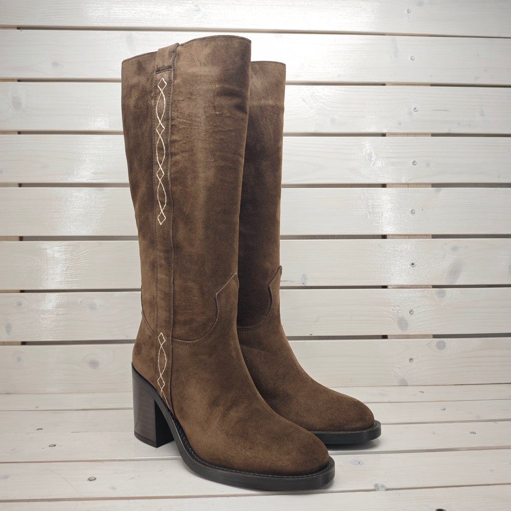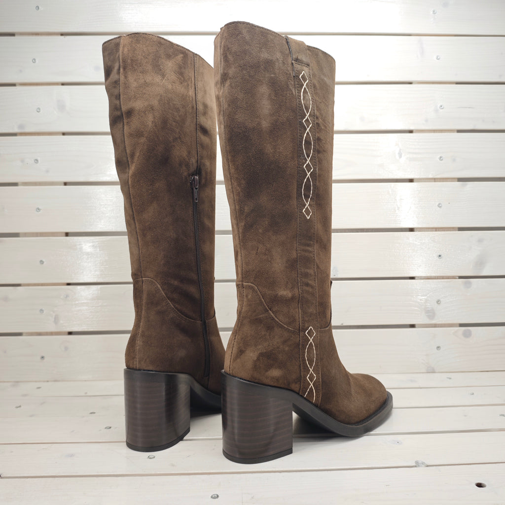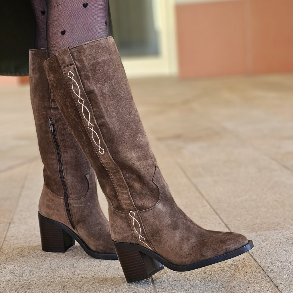 Stivale camperos in camoscio marrone, in vera pelle esterna con tessuto caldo interno, prodotto in spagna da Maestri artigiani
