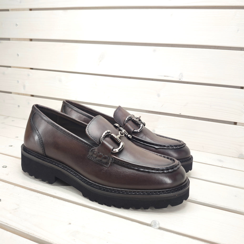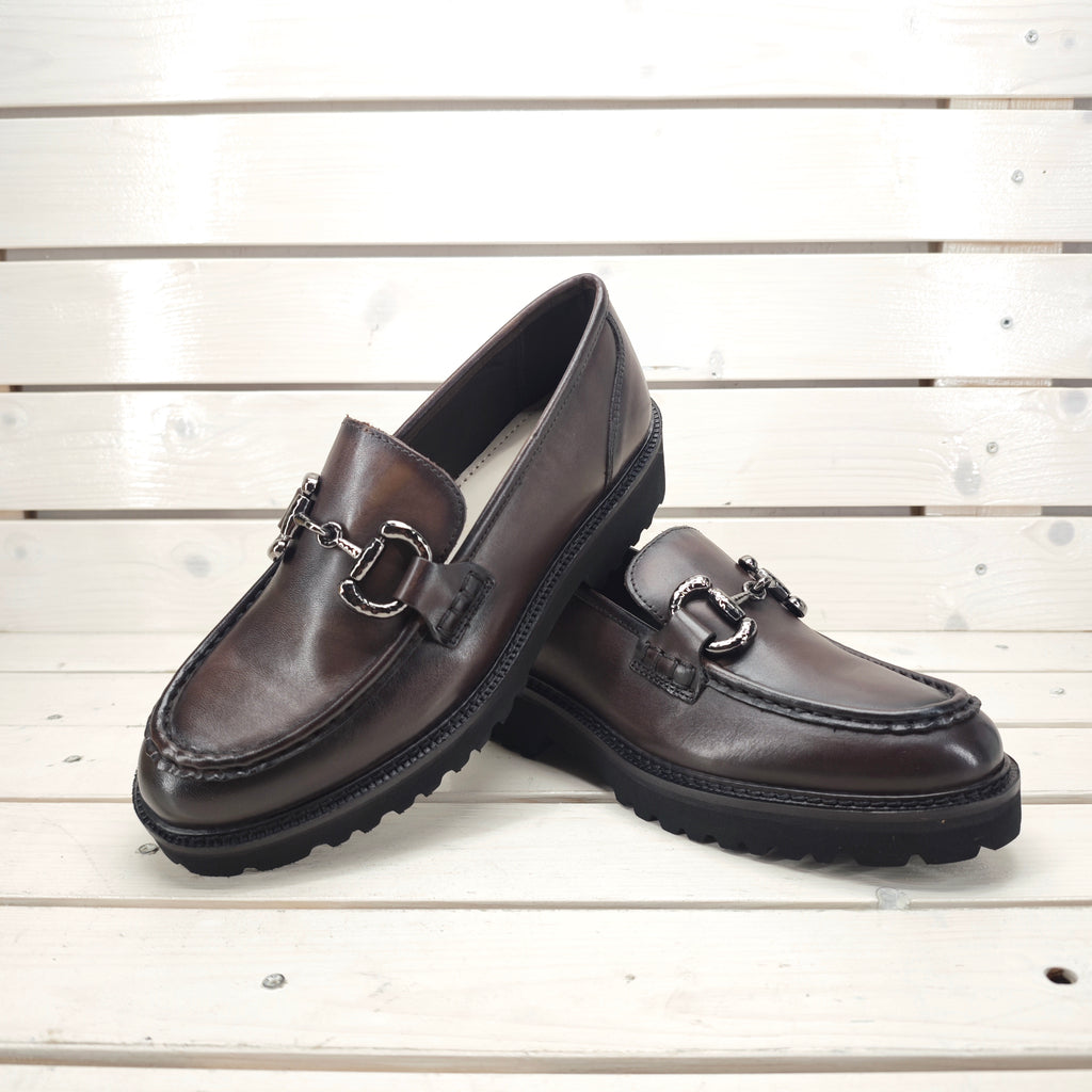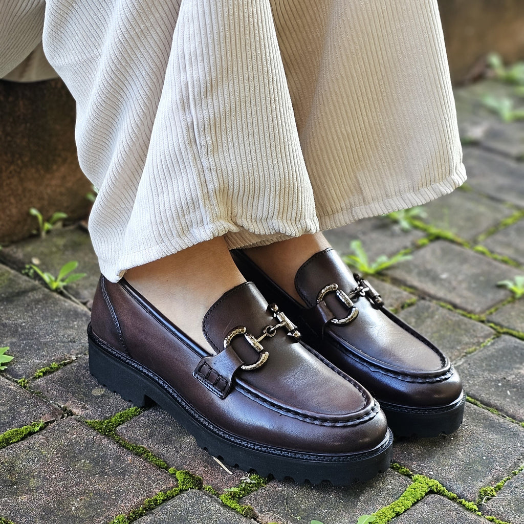 Mocassino in vitello a marchio Grunland in vera pelle, suola in gomma antiscivolo da 4 cm, calzata regolare