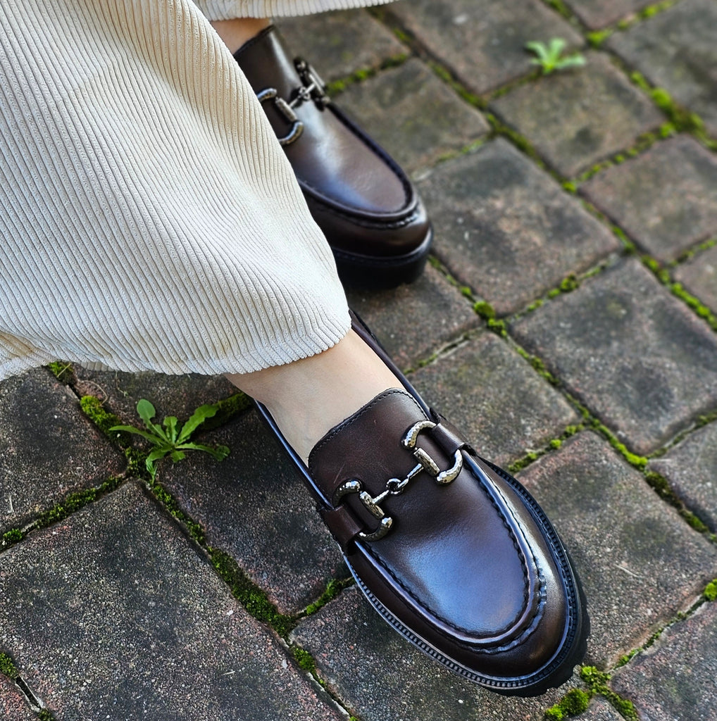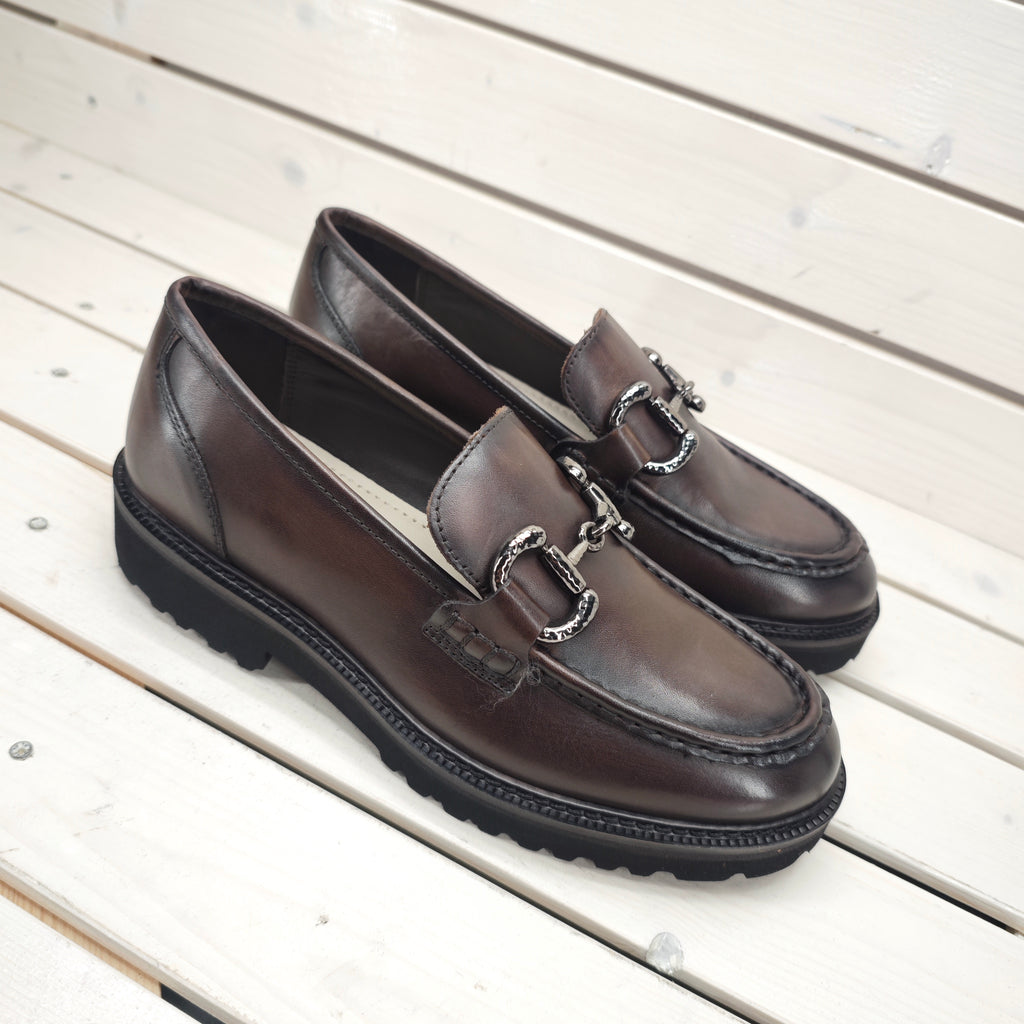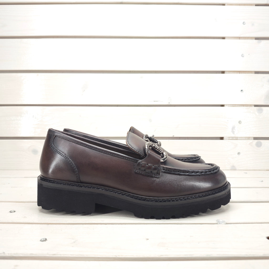 Mocassino in vitello a marchio Grunland in vera pelle, suola in gomma antiscivolo da 4 cm, calzata regolare