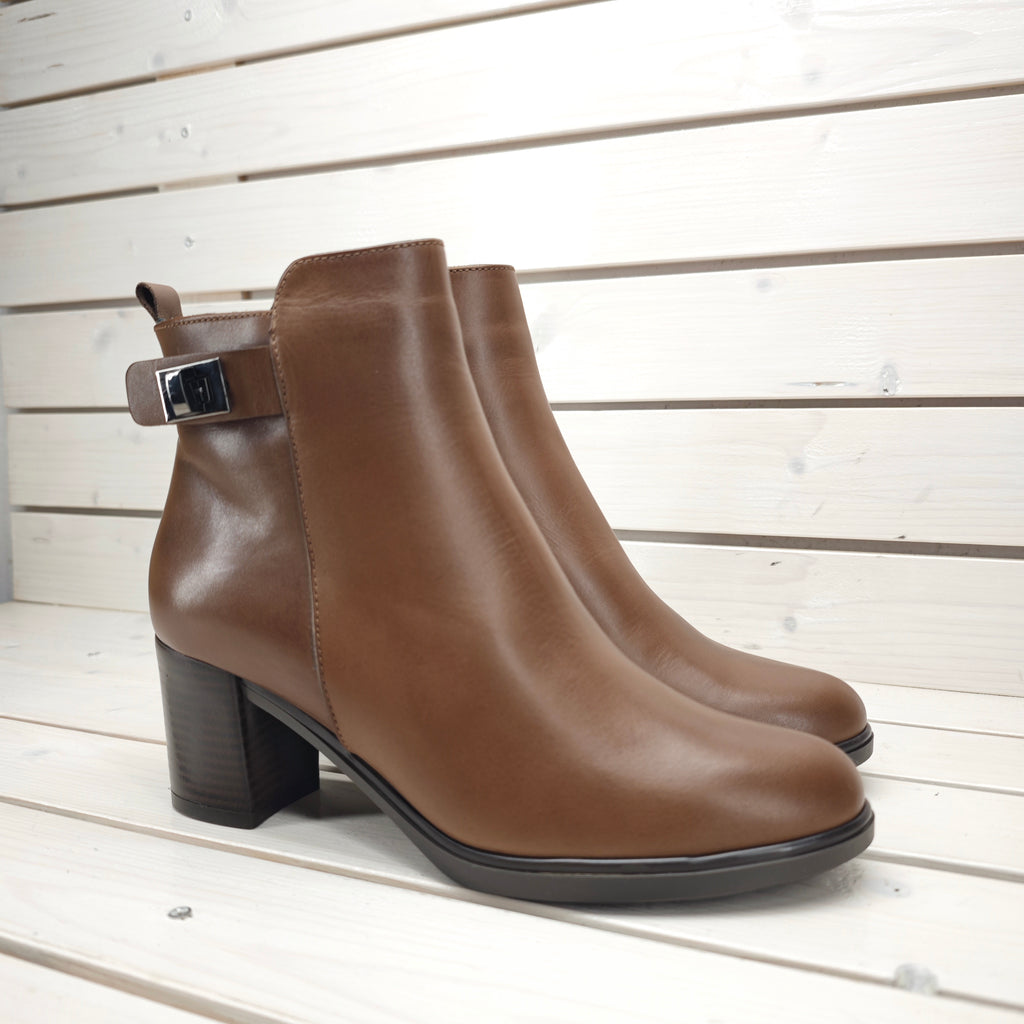 Tronchetto in morbidissima vera pelle interna ed esterna con plateau sottile in gomma e tacco da 6 cm; con cerniera interna