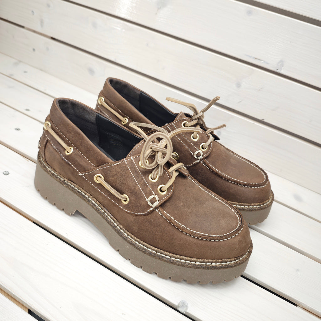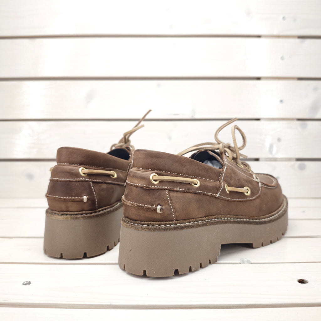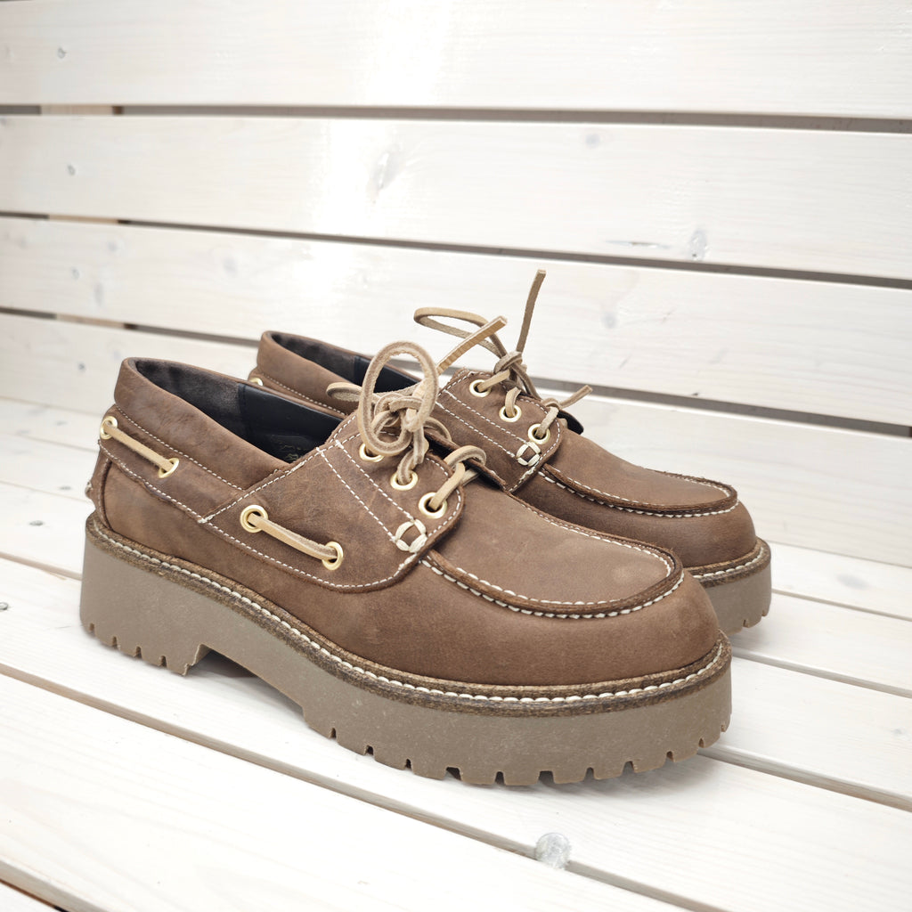 Mocassino vela in vitello ingrassato con suola carrarmato da 4 cm