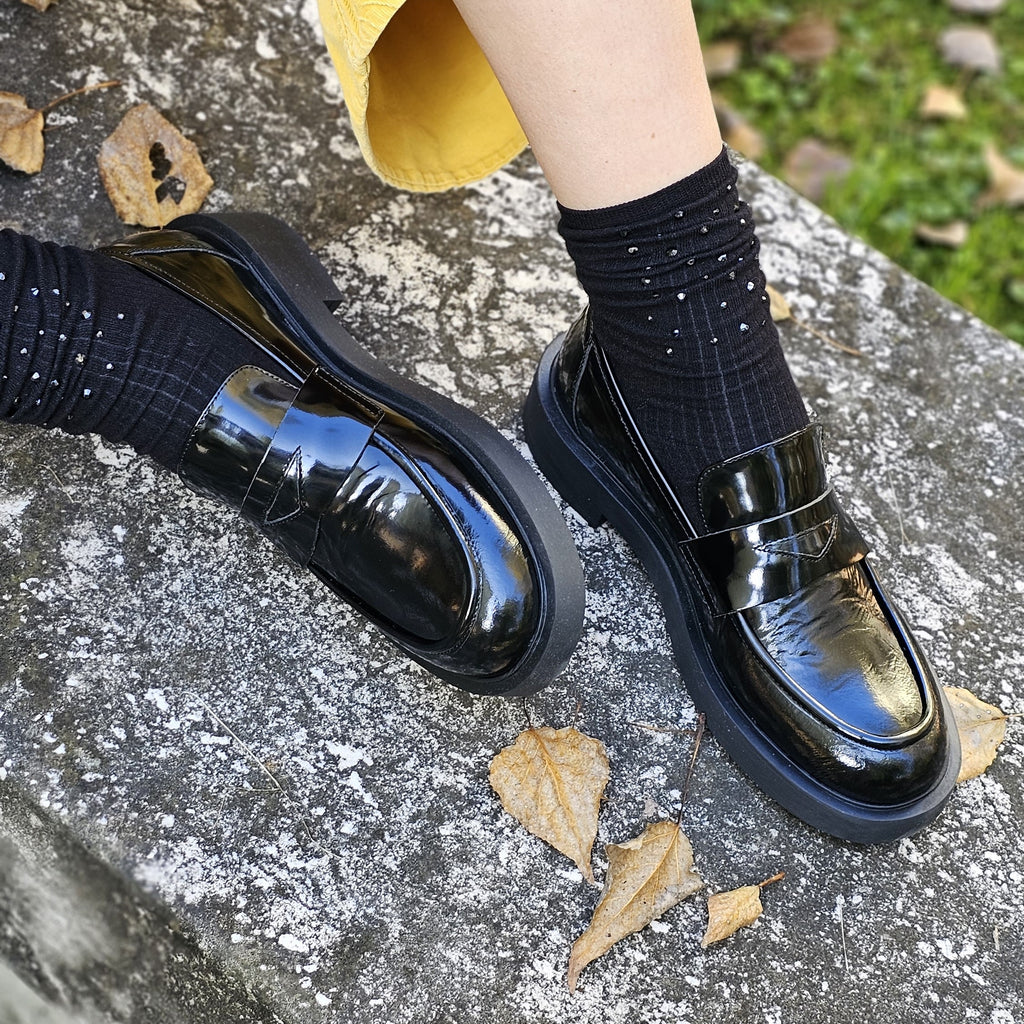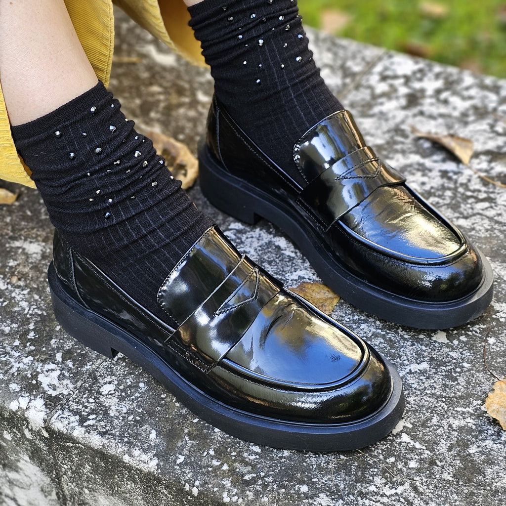 Mocassino college in vera pelle interna ed esterna con suola in gomma antiscivolo da 3 cm