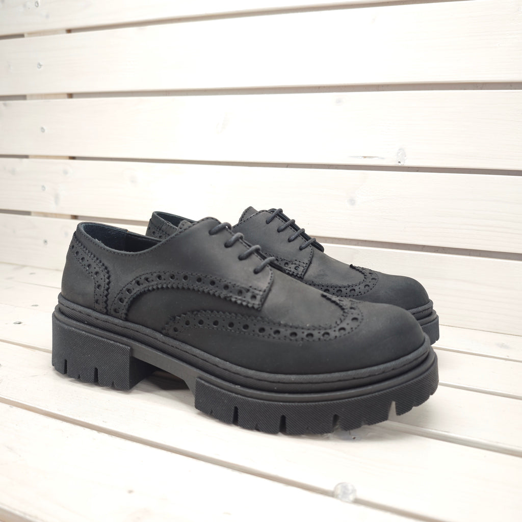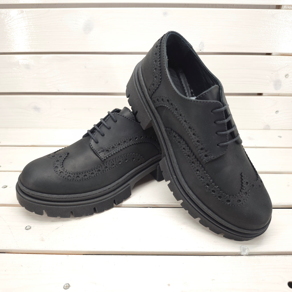 Francesina stringata con coda di rondine in vera pelle interna ed esterna, suola in gomma antiscivolo da 3 cm