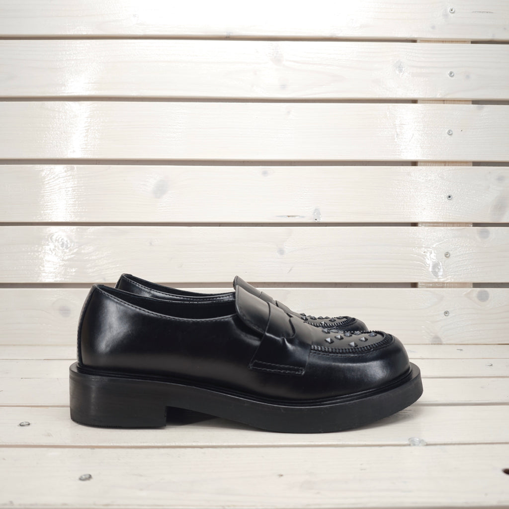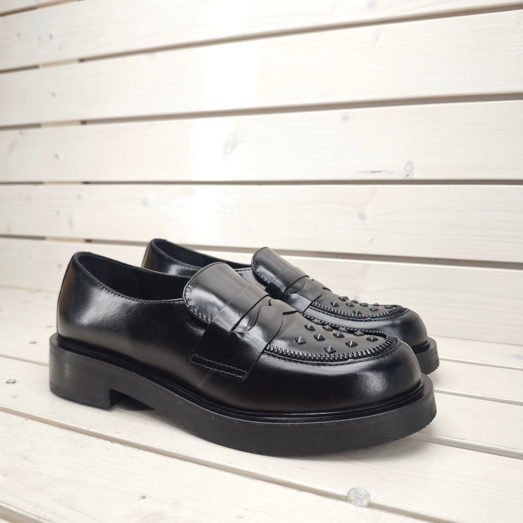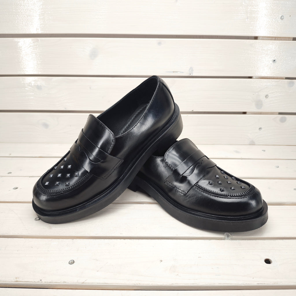 Mocassino college con borchiette in vera pelle interna ed esterna, suola in gomma antiscivolo da 2 cm