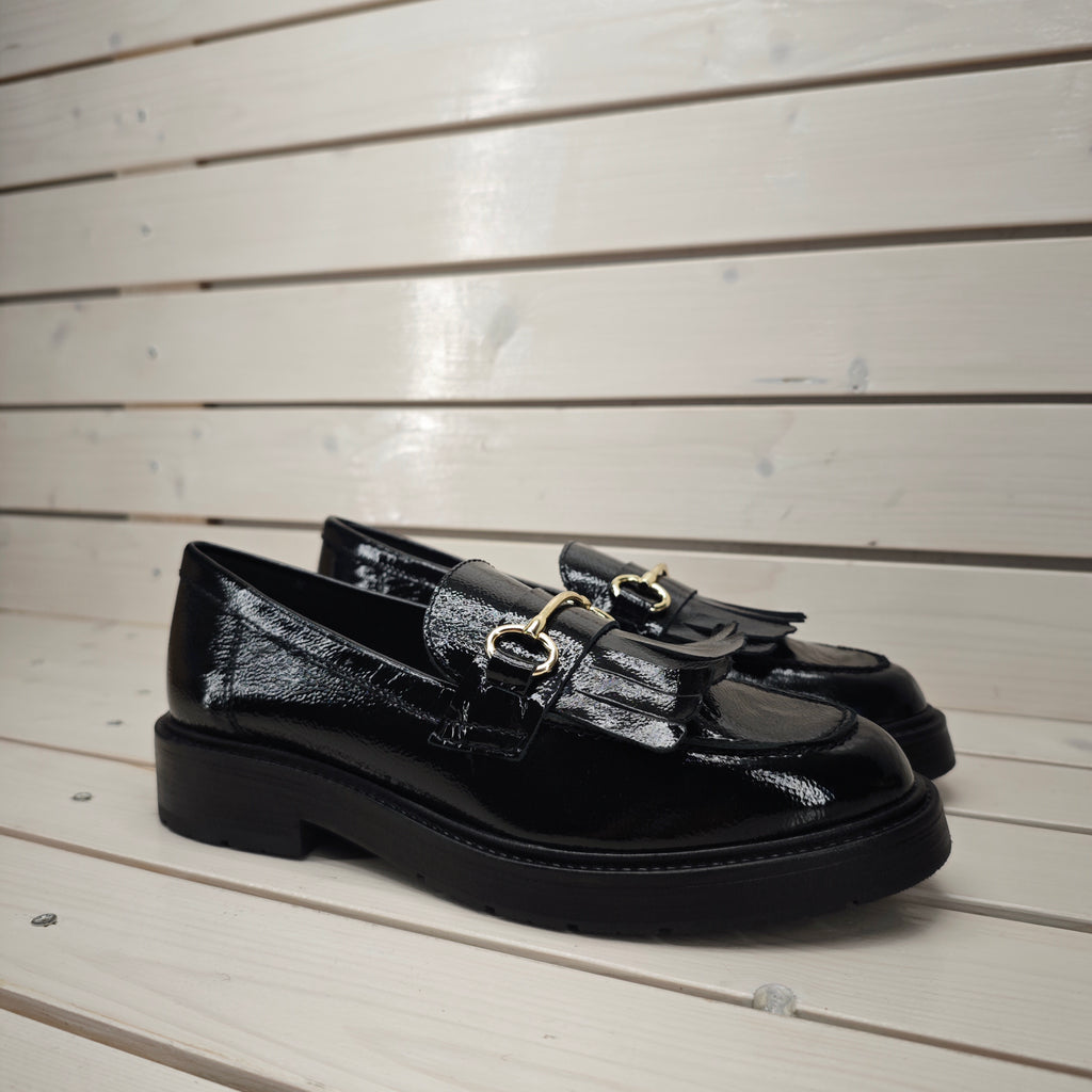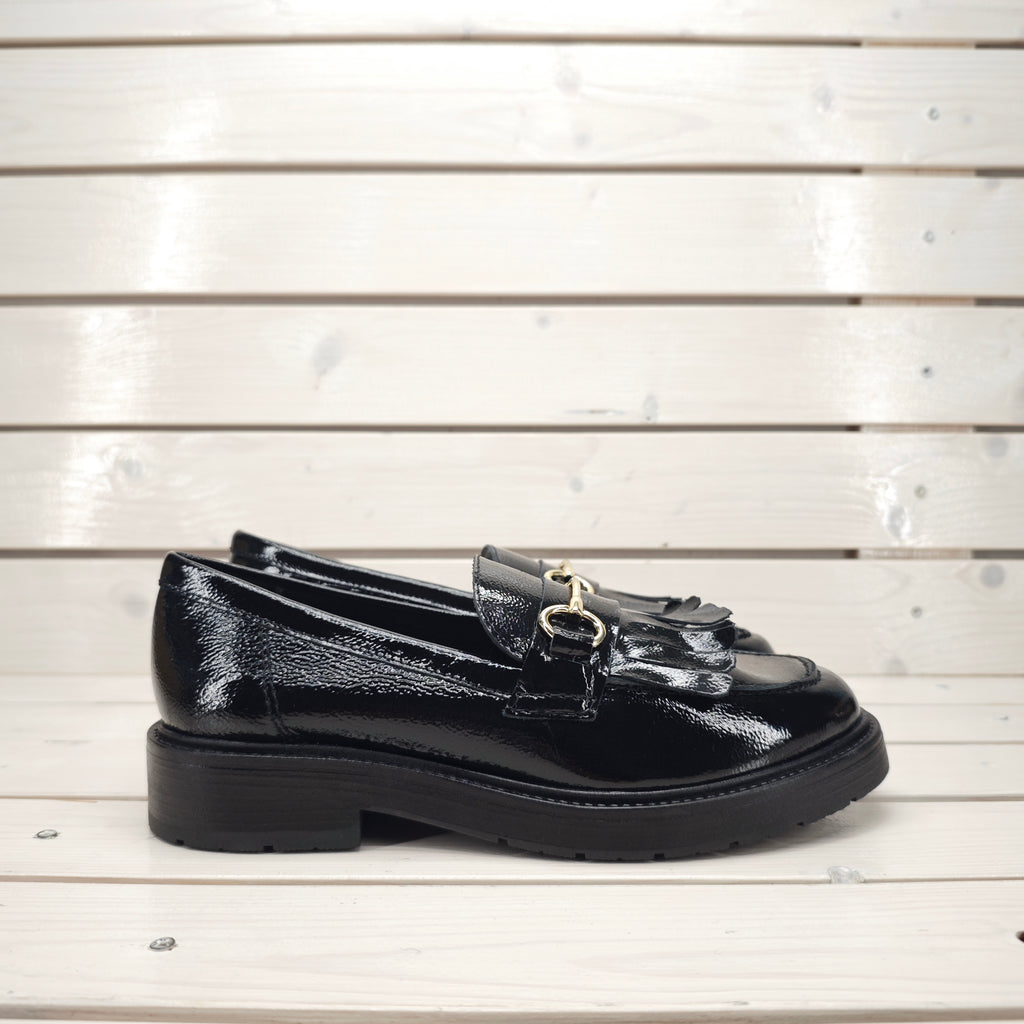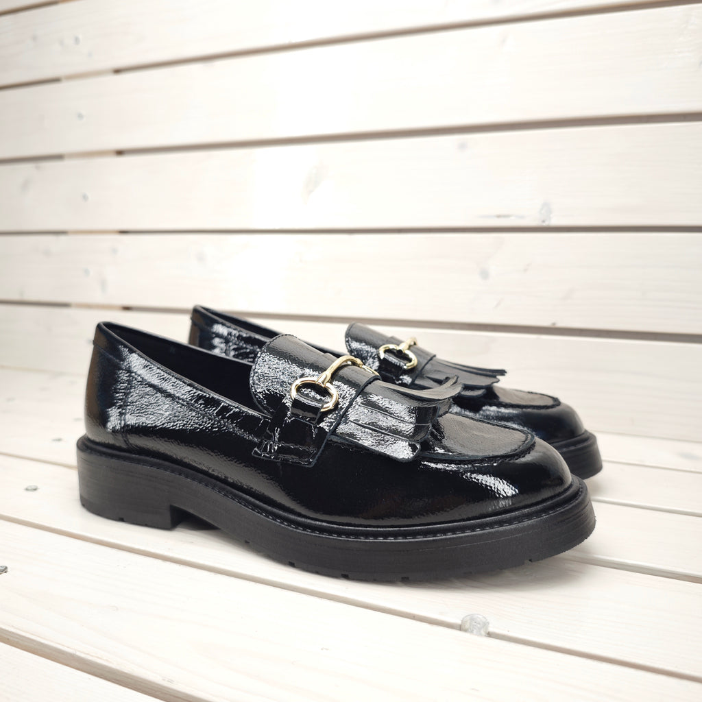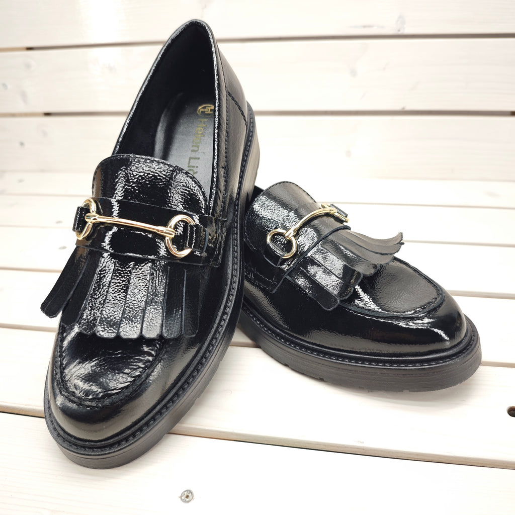 Mocassino college invernice con accessorio e frangetta, in vera pelle con gomma antiscivolo da 2 cm