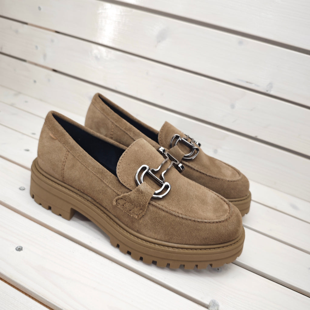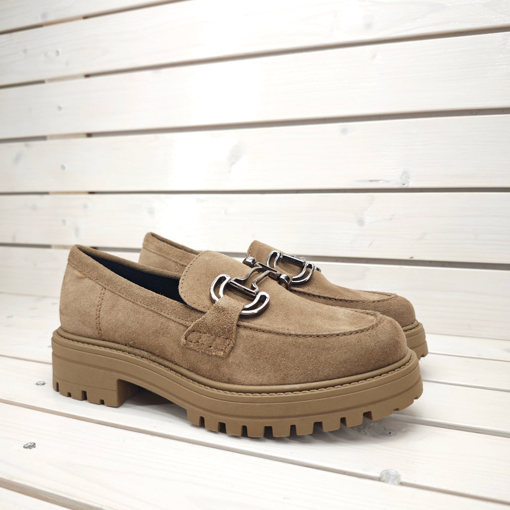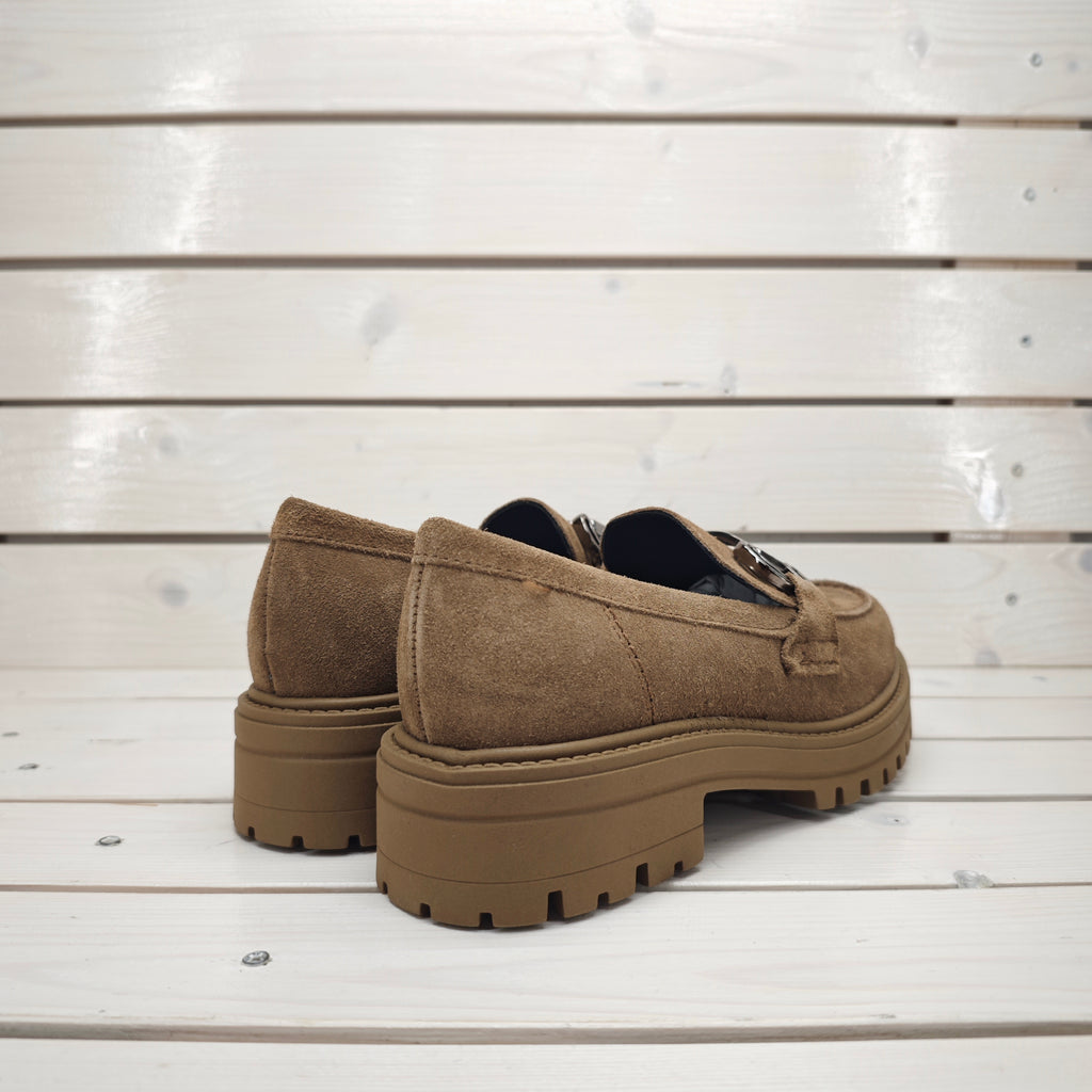 Mocassino in camoscio con accessorio, in vera pelle con gomma antiscivolo da 4 cm