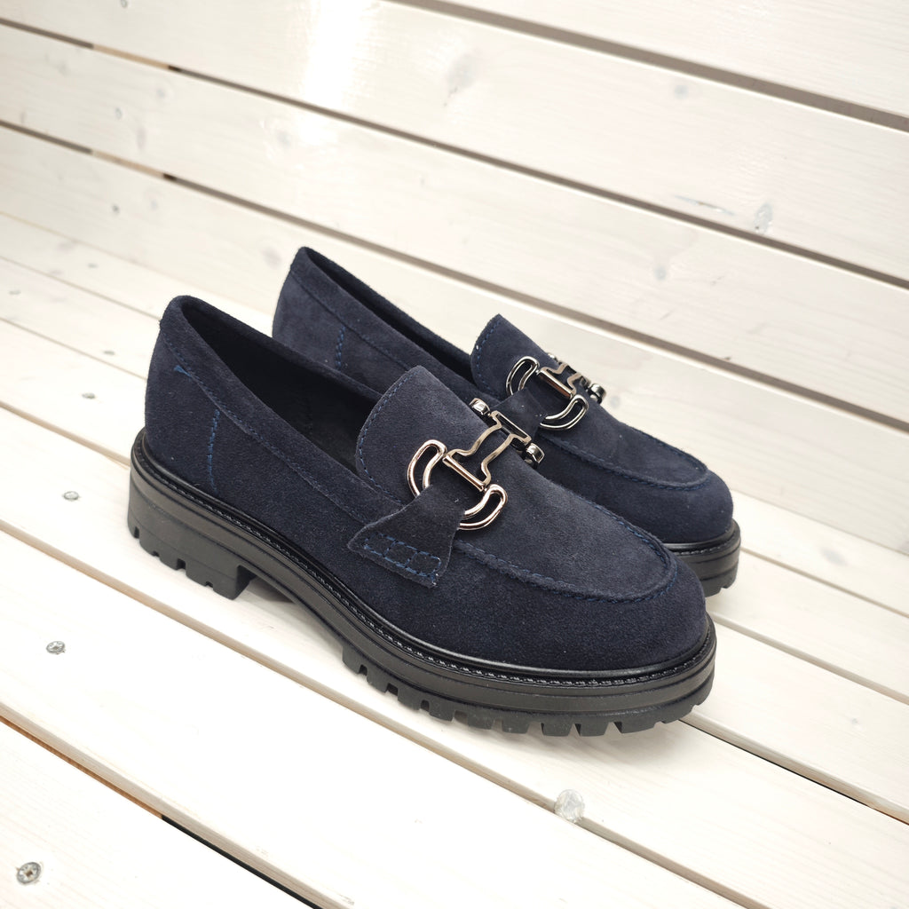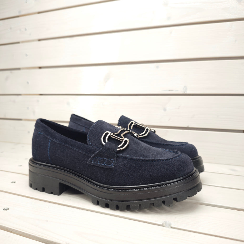 Mocassino in camoscio con accessorio, in vera pelle con gomma antiscivolo da 4 cm