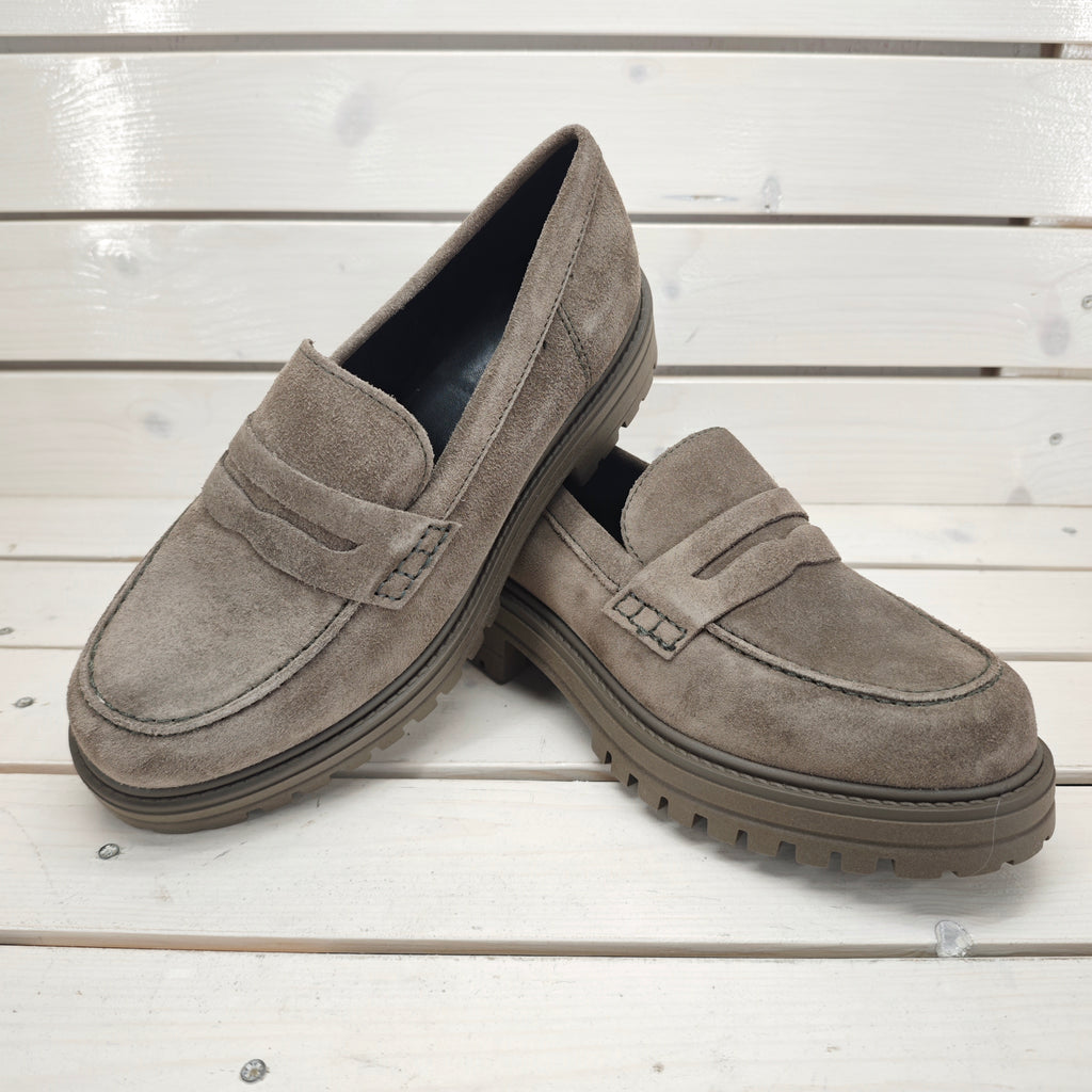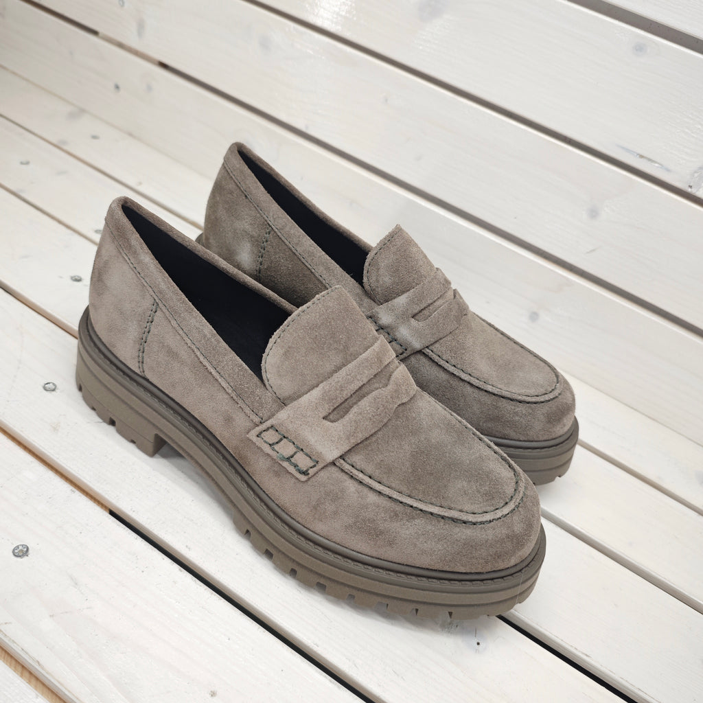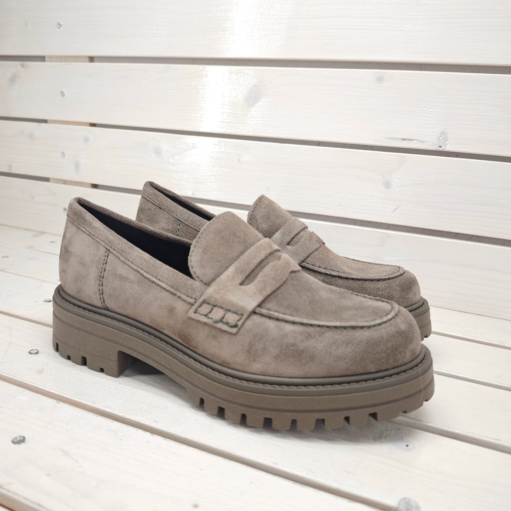 Mocassino in vera pelle con bocca di leone e suola in gomma antiscivolo da 4 cm