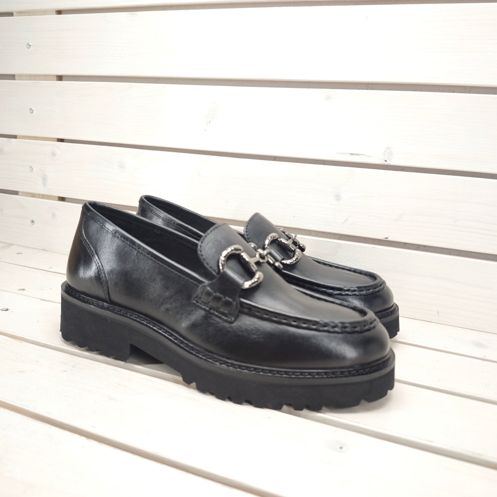 Mocassino a marchio Grunland in vera pelle, suola in gomma antiscivolo da 4 cm, calzata regolare
