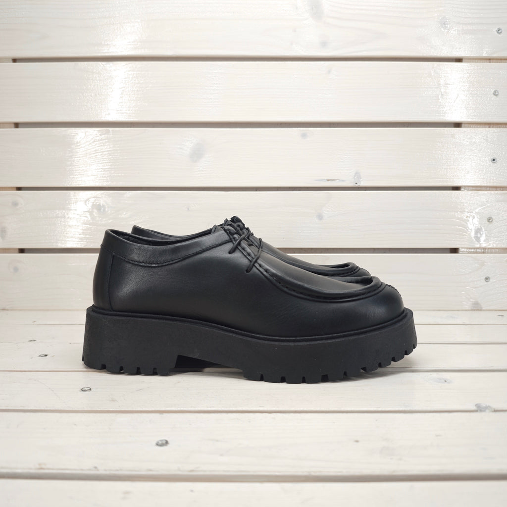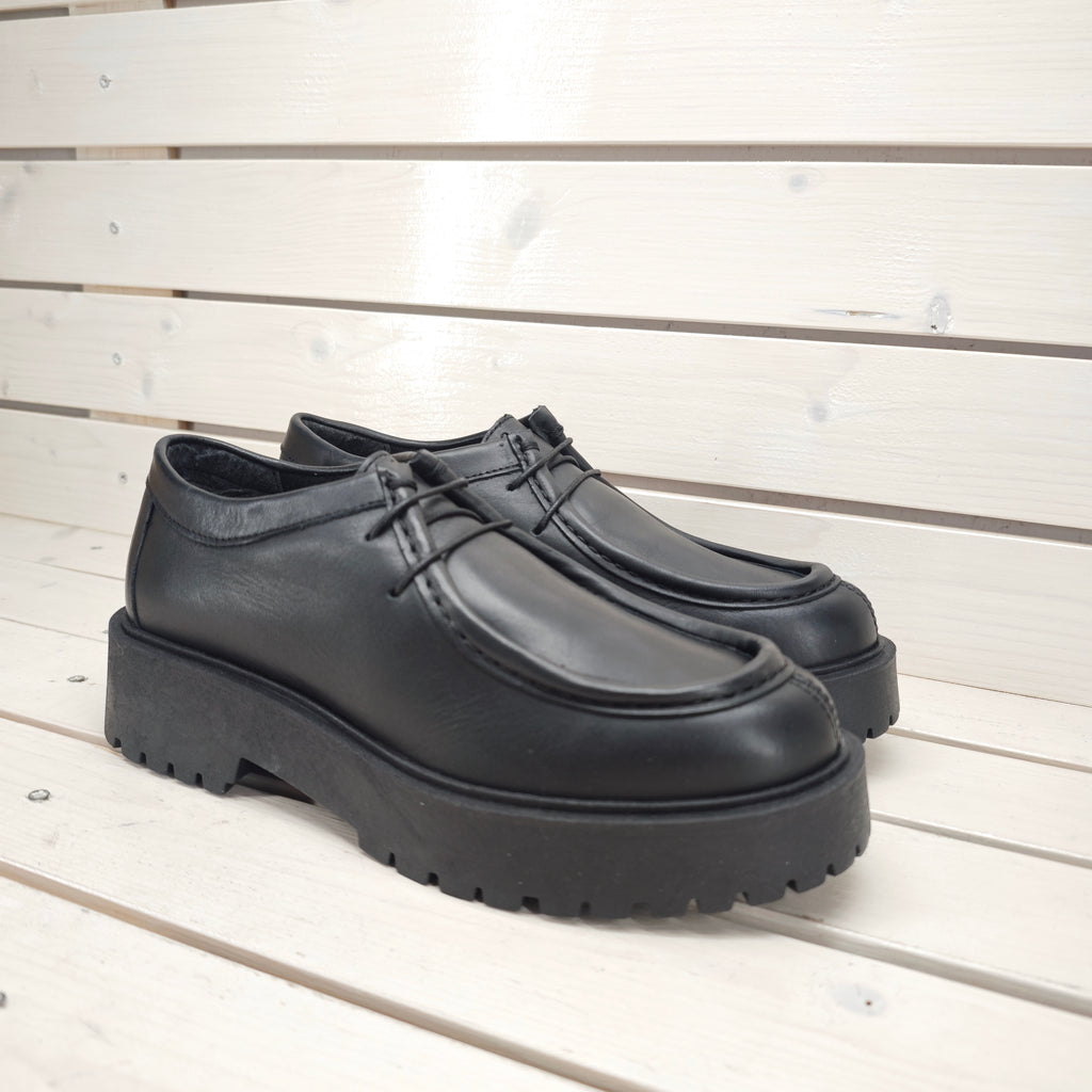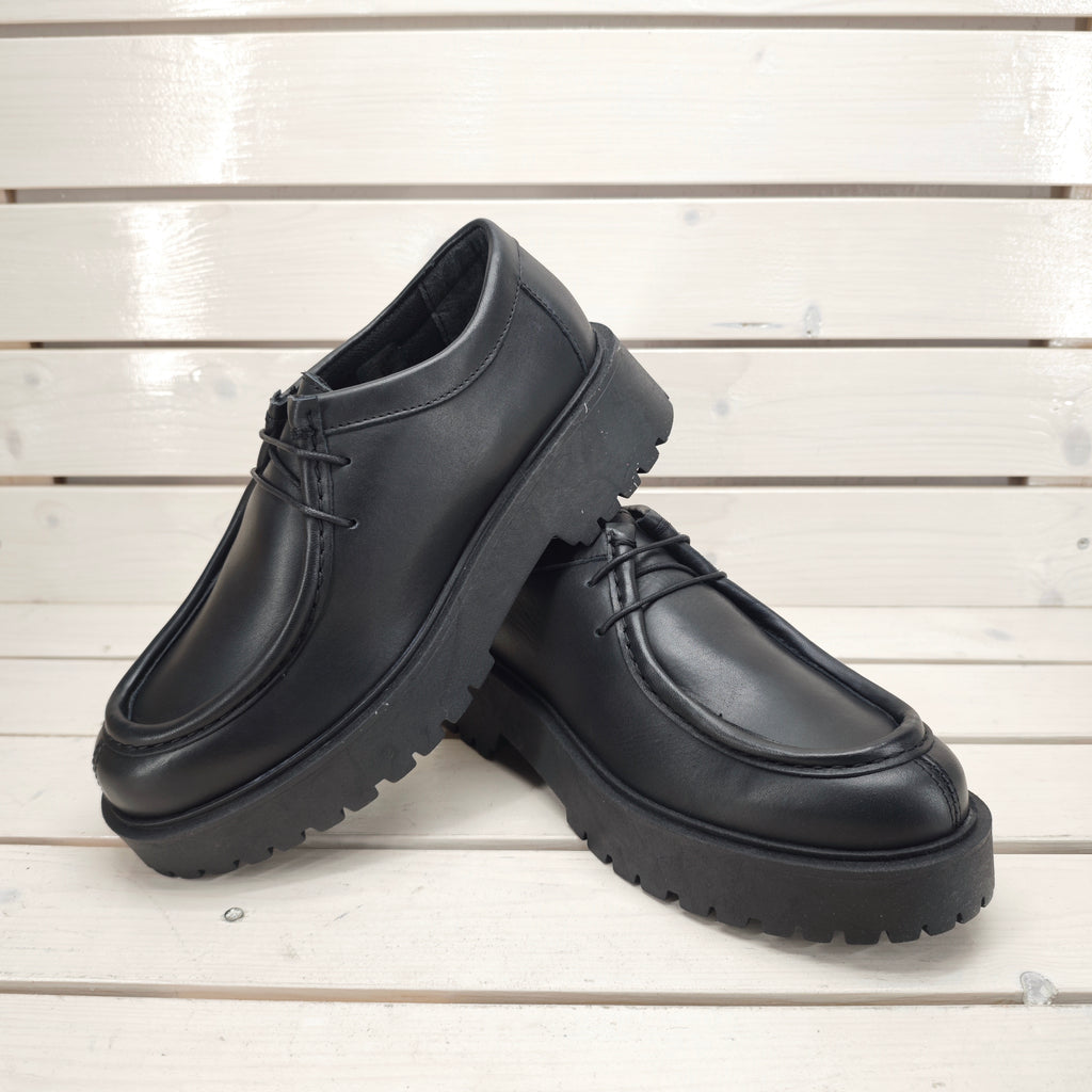 Mocassino in vera pelle con interno in tessuto caldo; calzata regolare