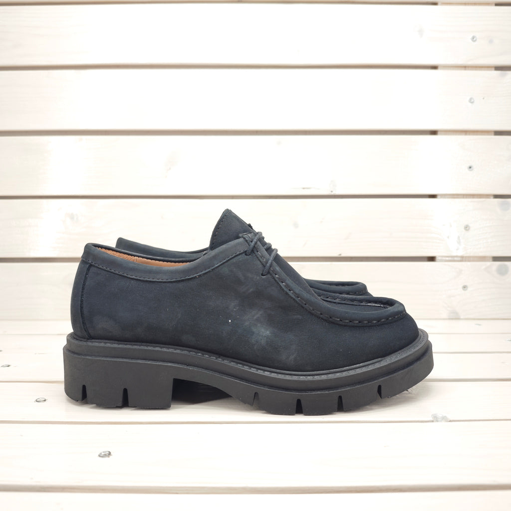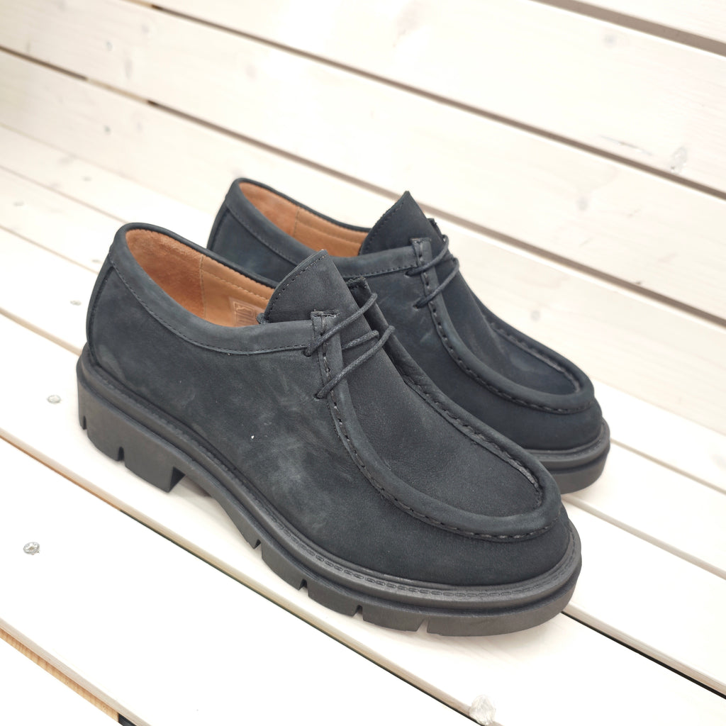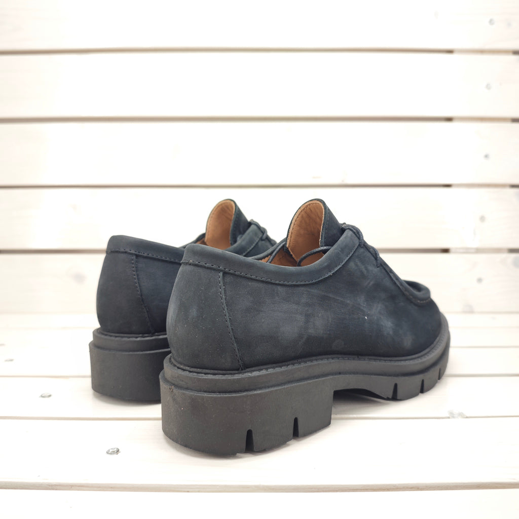 Ingegnere stringato in vera pelle nubuk con suola in gomma superflessibile; soletta imbottita e calzata regolare