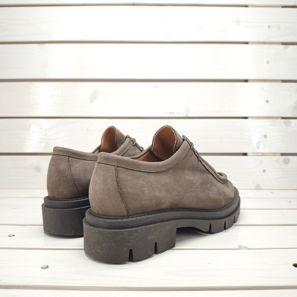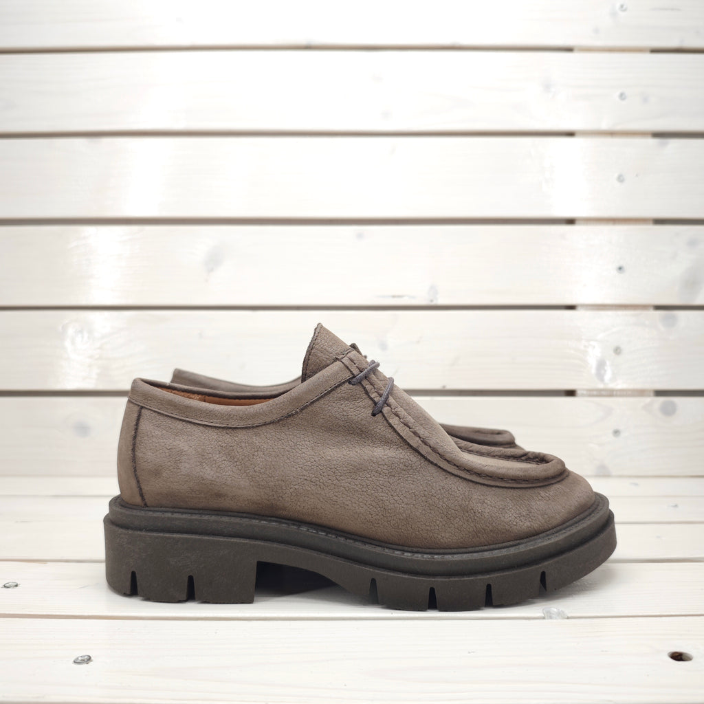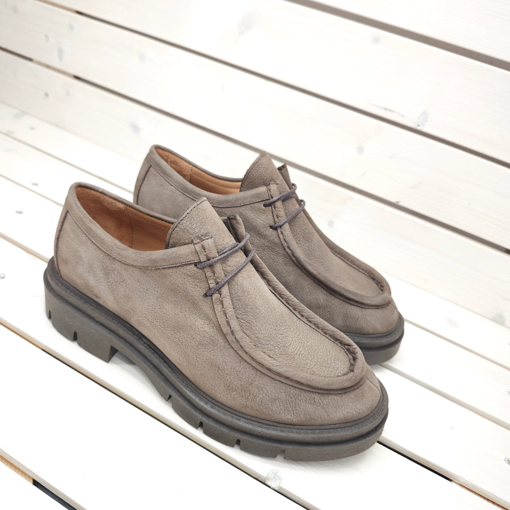 Ingegnere stringato in vera pelle nubuk con suola in gomma superflessibile; soletta imbottita e calzata regolare