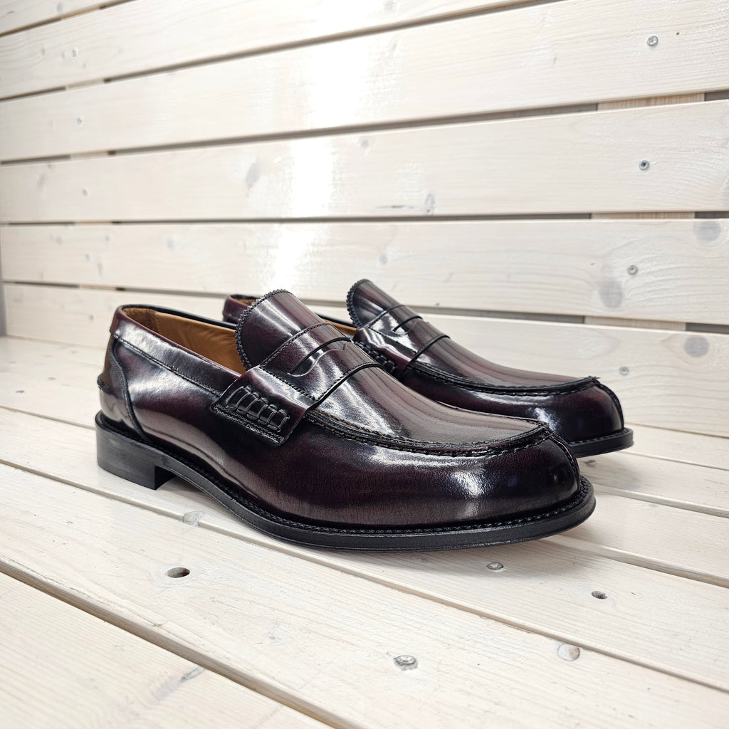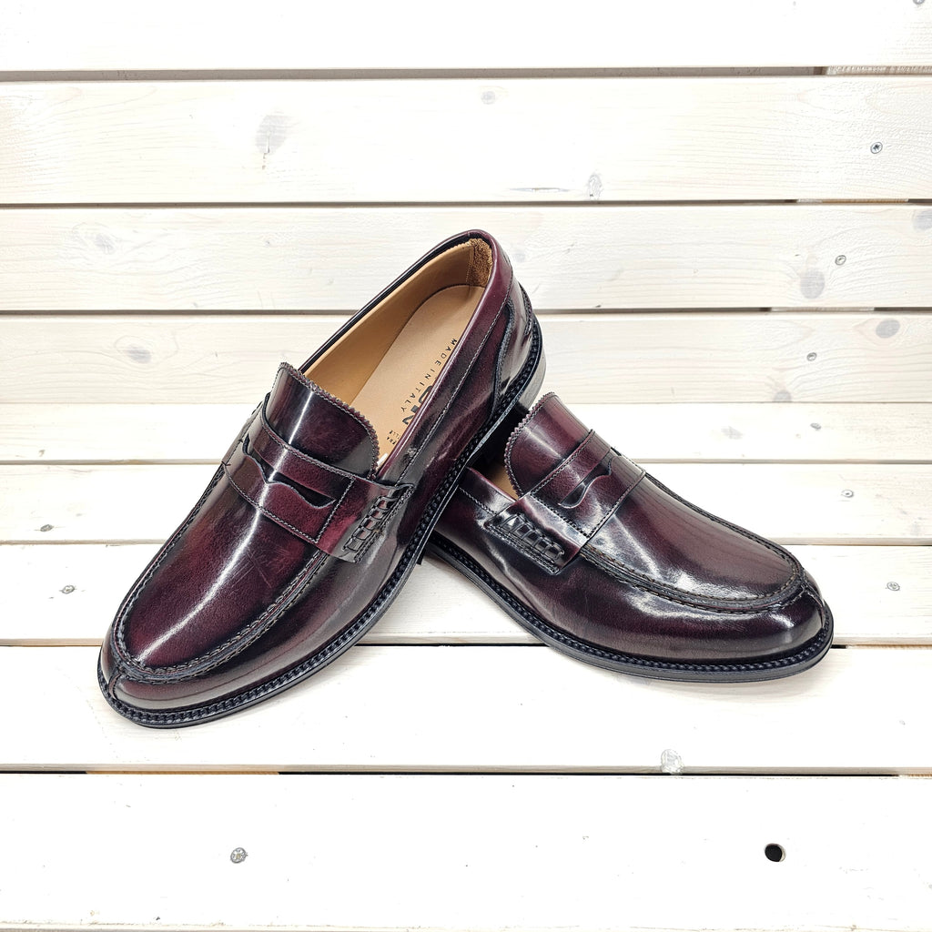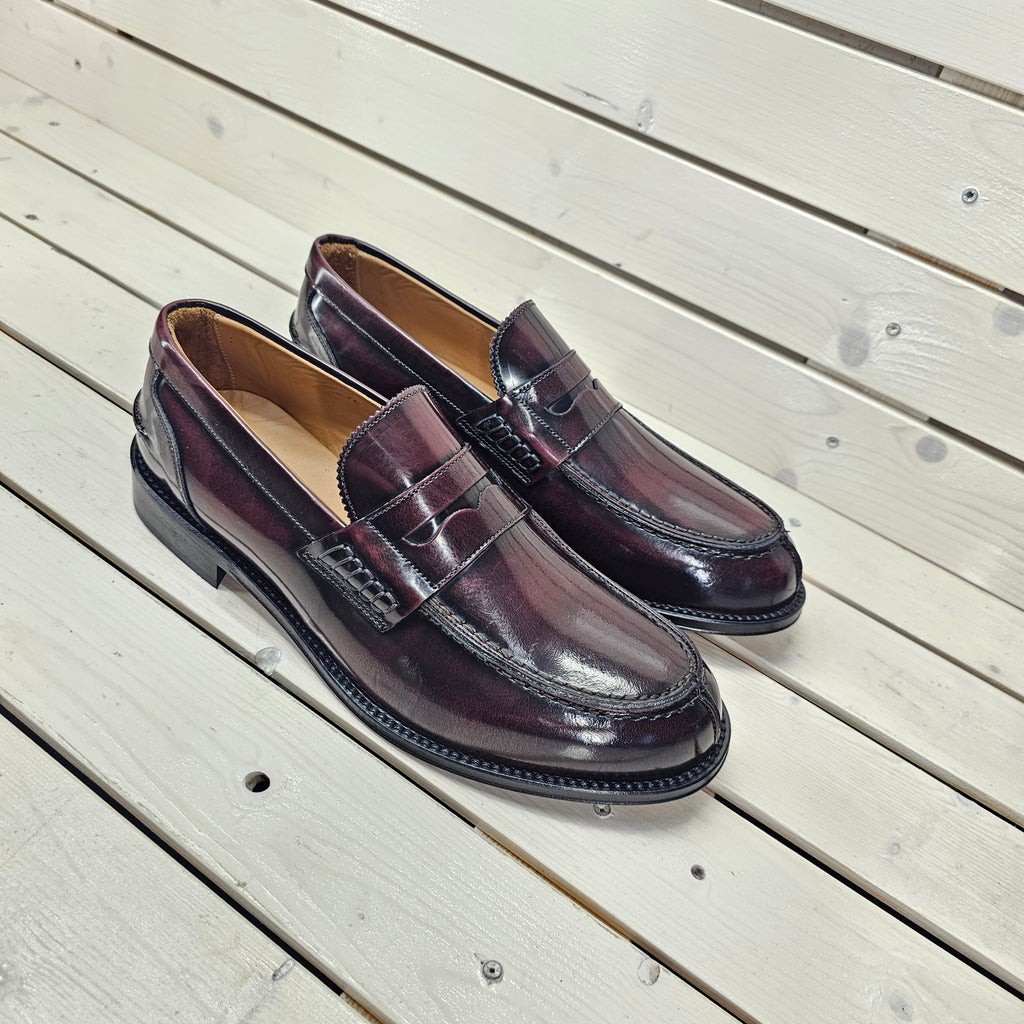 Mocassino college in vera pelle interna ed esterna e suola in cuoio con goccia in gomma antiscivolo