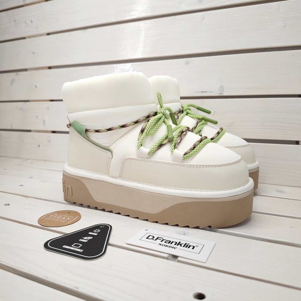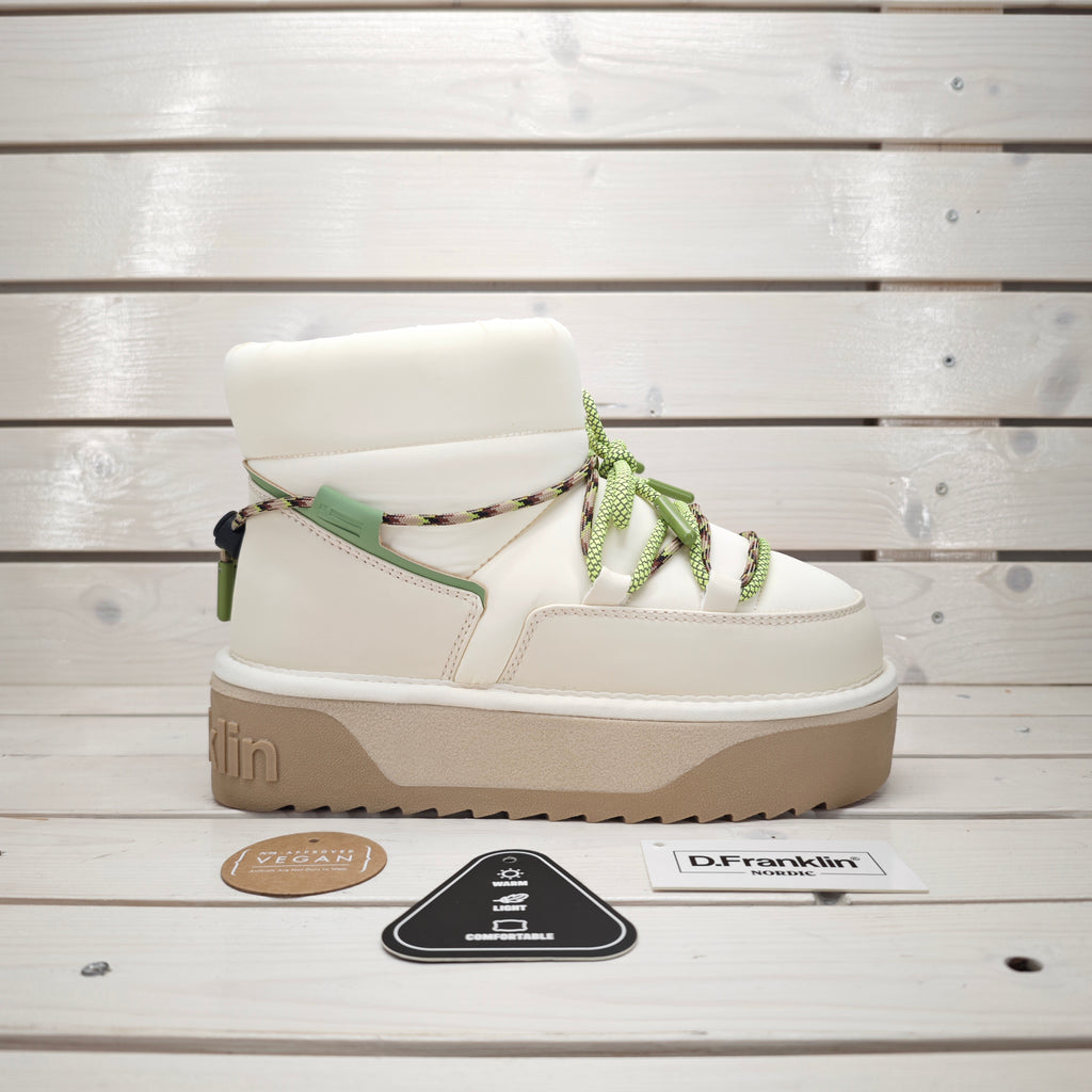La suola in gomma garantisce una presa sicura su diverse superfici, e i lacci bicolore nei toni del verde e multicolore, oltre a offrire una calzata perfetta, aggiungono un tocco fresco e originale. Un’ottima scelta per l’inverno, che unisce funzionalità e stile.