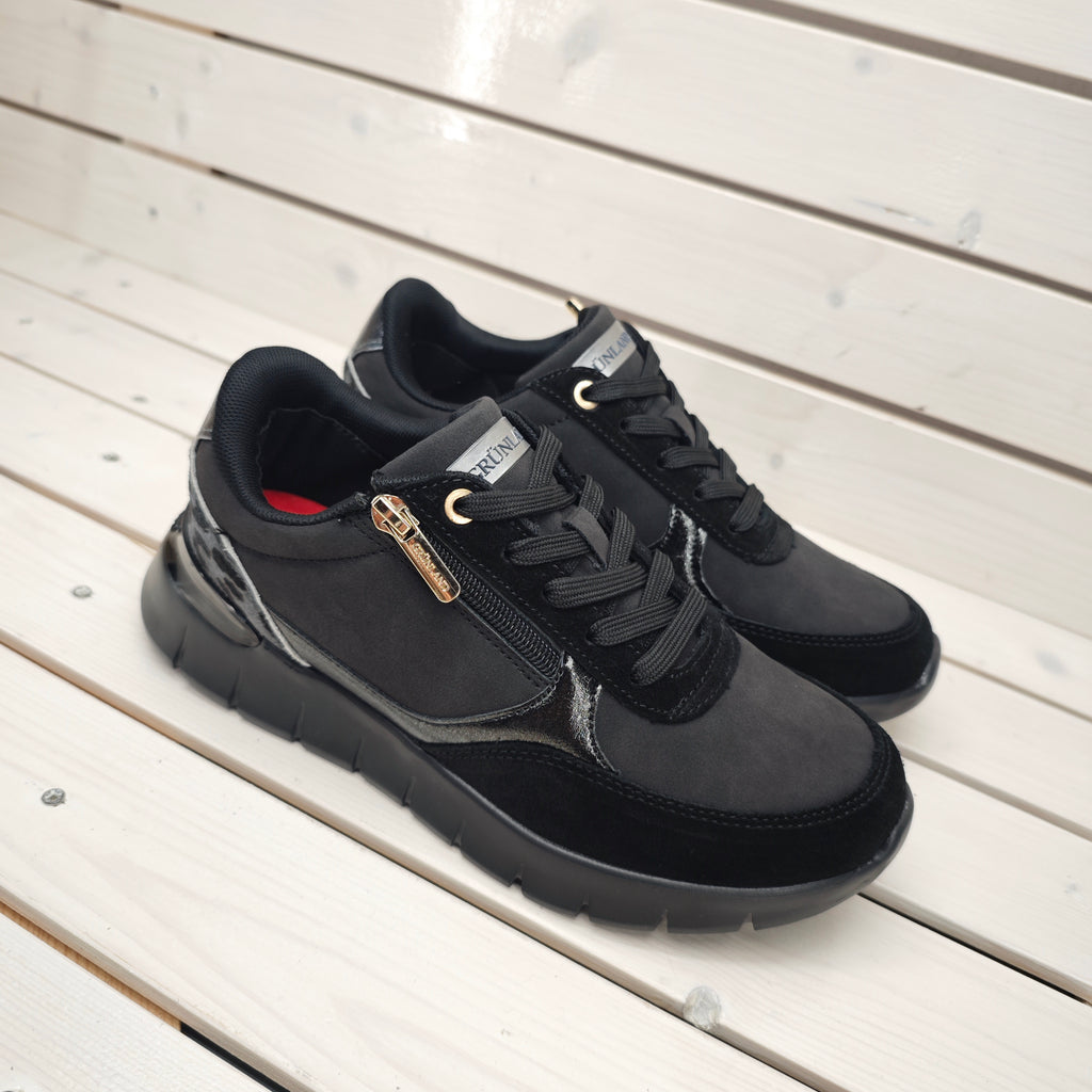 Sneaker a marchio Grunland con plantare in memory estraibile e cerniera esterna per favorire la calzata; suola rialzata da 3cm