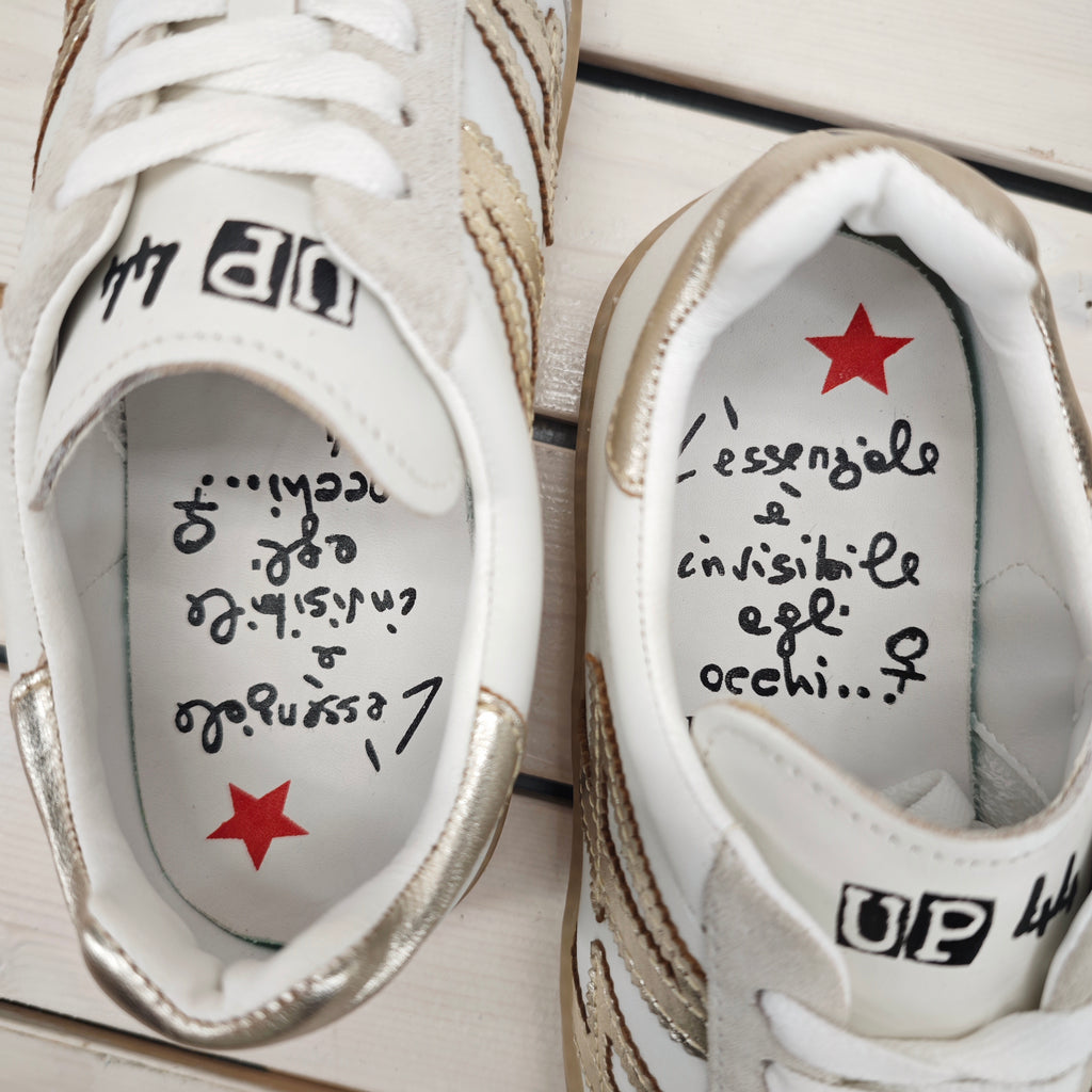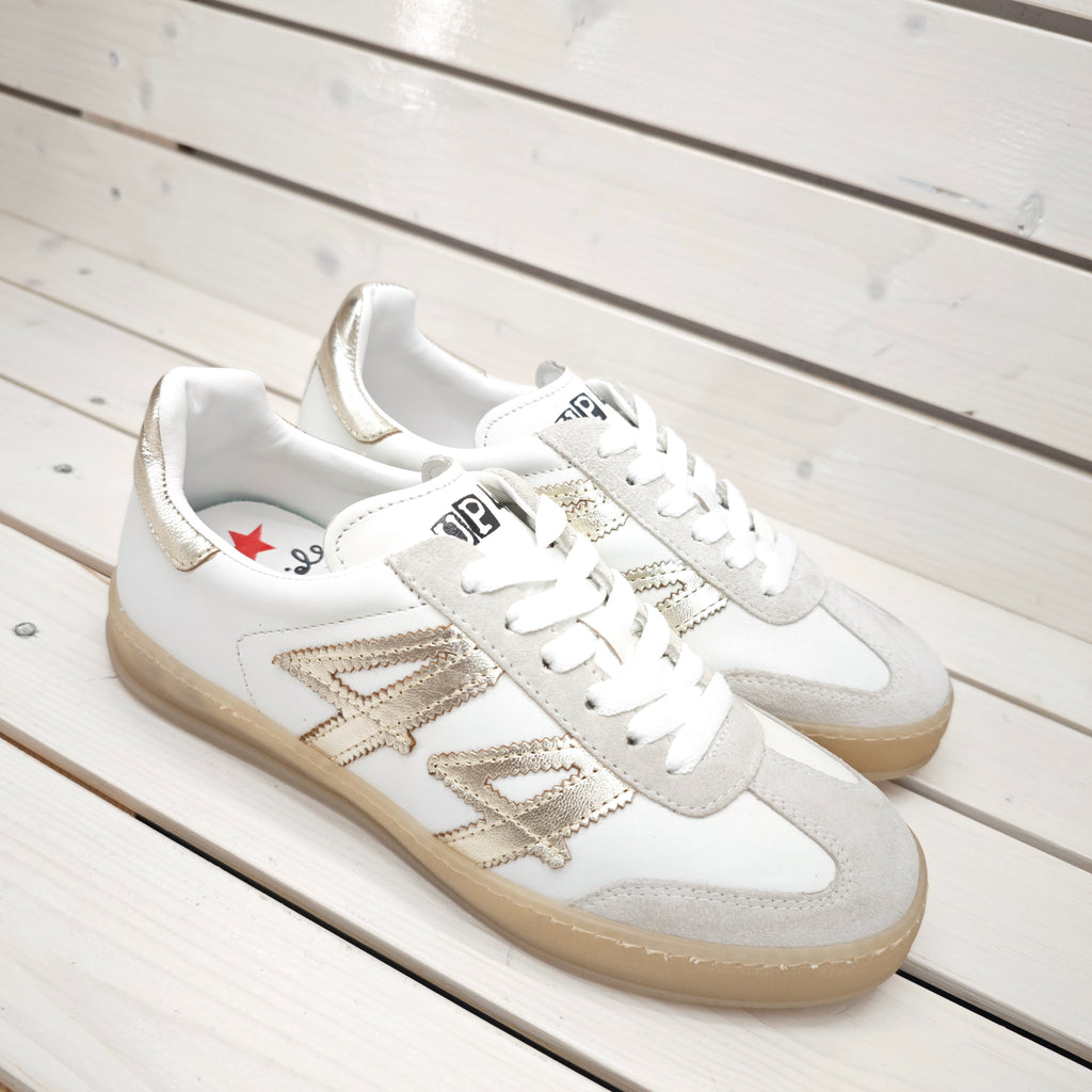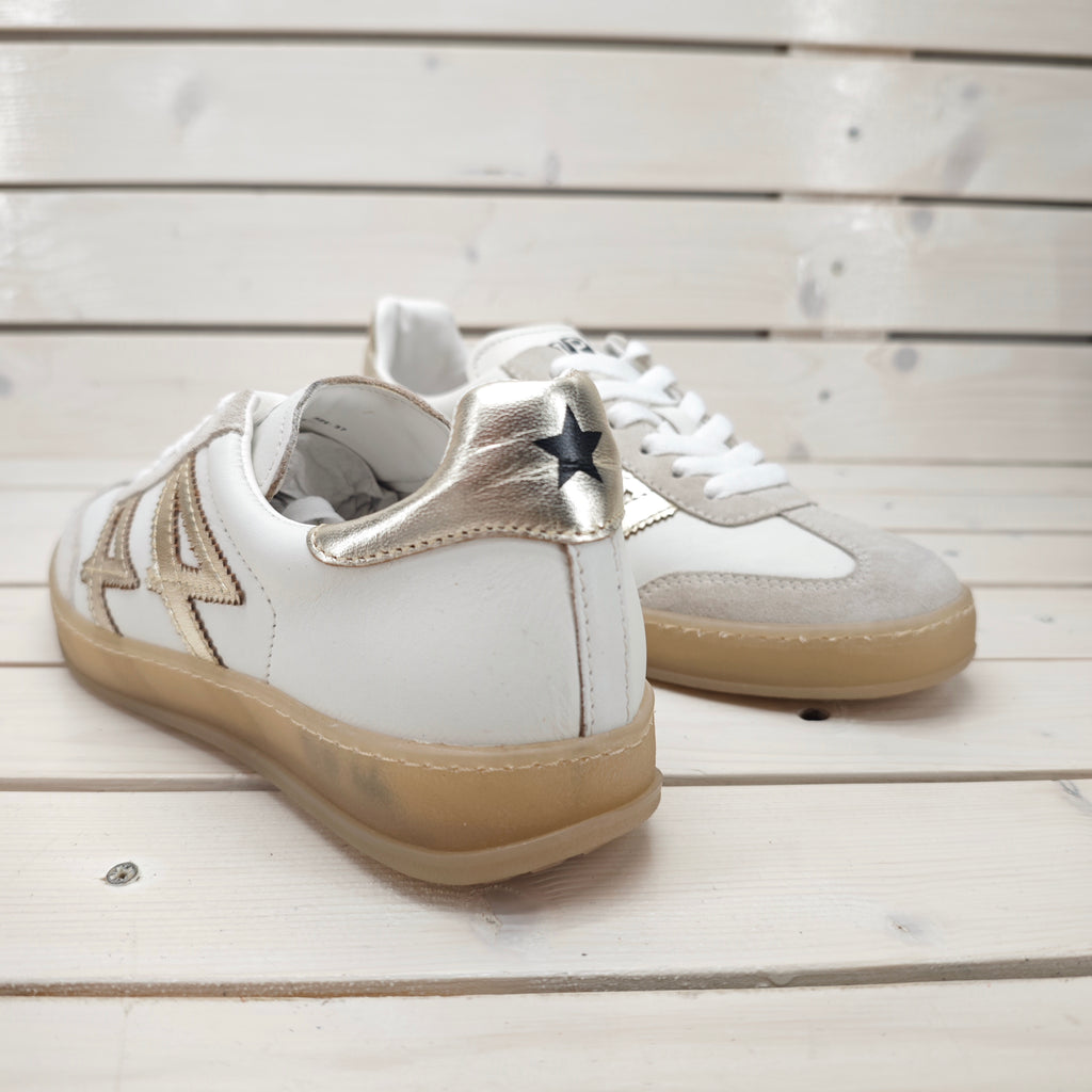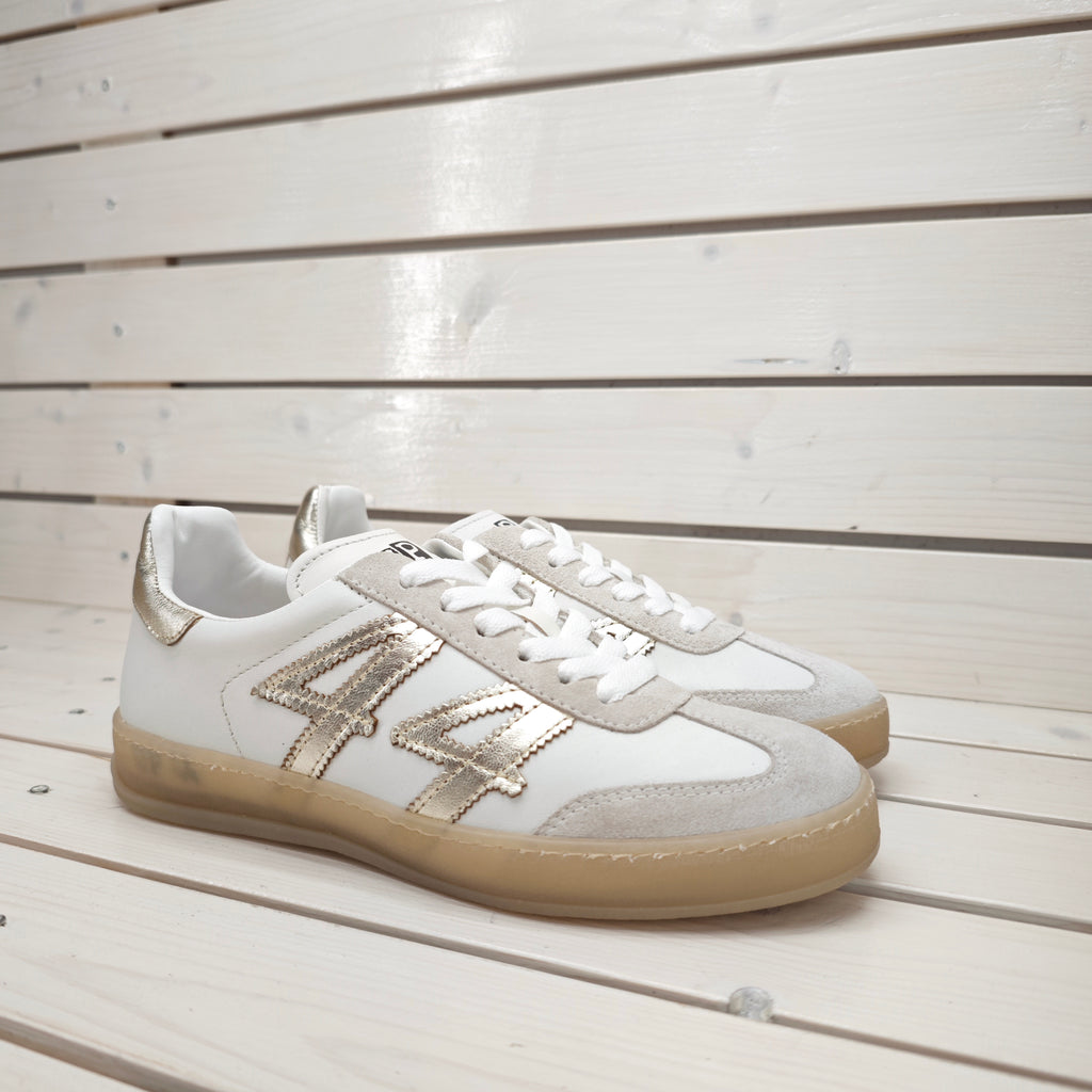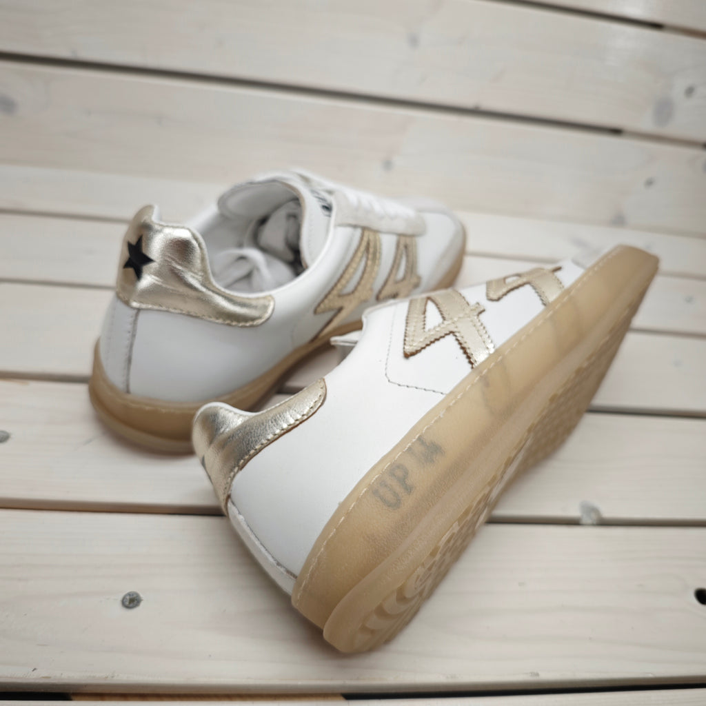 Sneaker in vera pelle con interno in pelle misto cotone; calzata regolare, con plantare estraibile