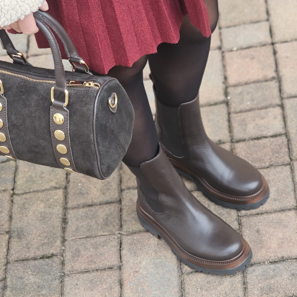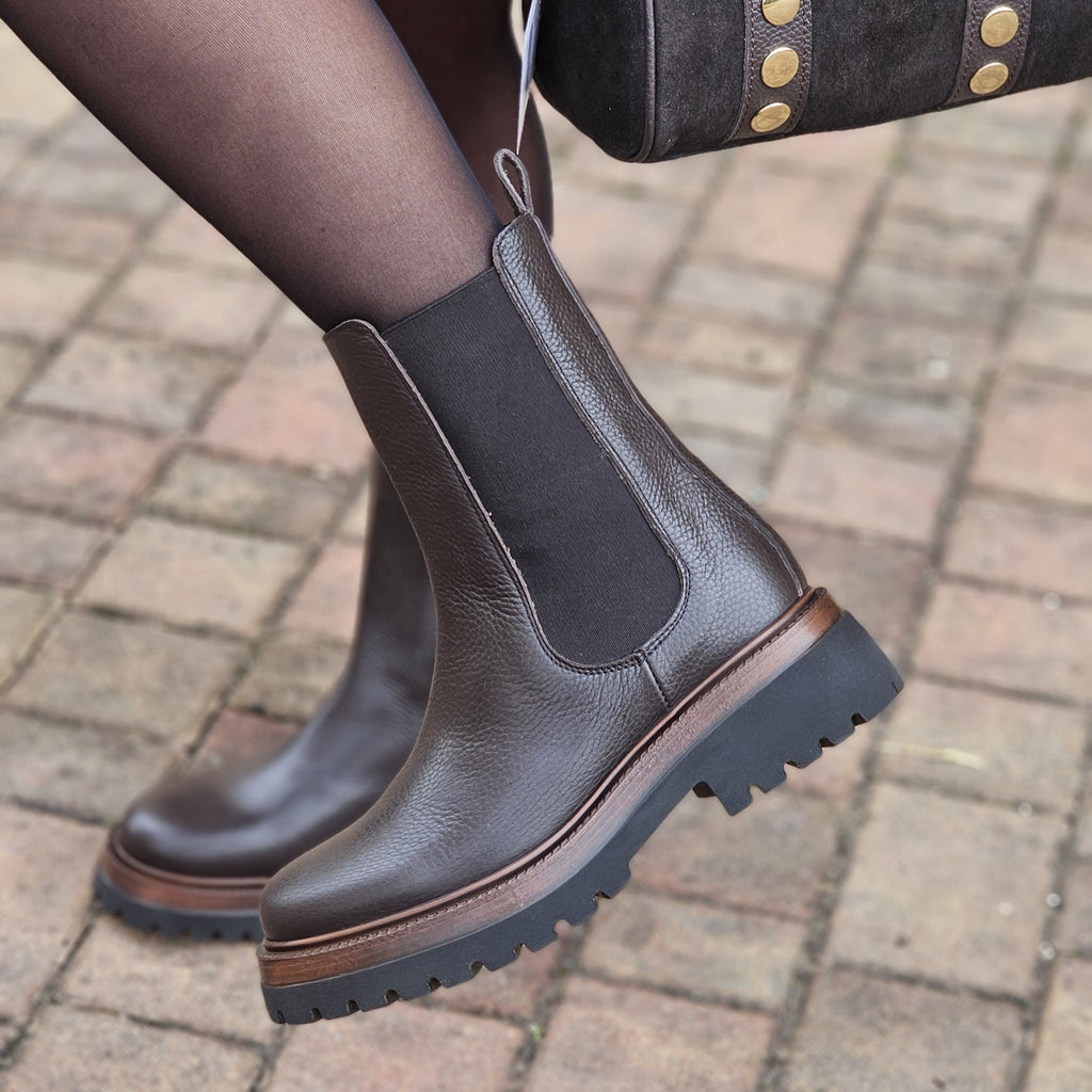 Stivaletto in vera pelle interna ed esterna con suola carrarmato da 4 cm