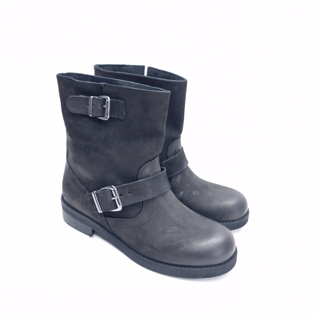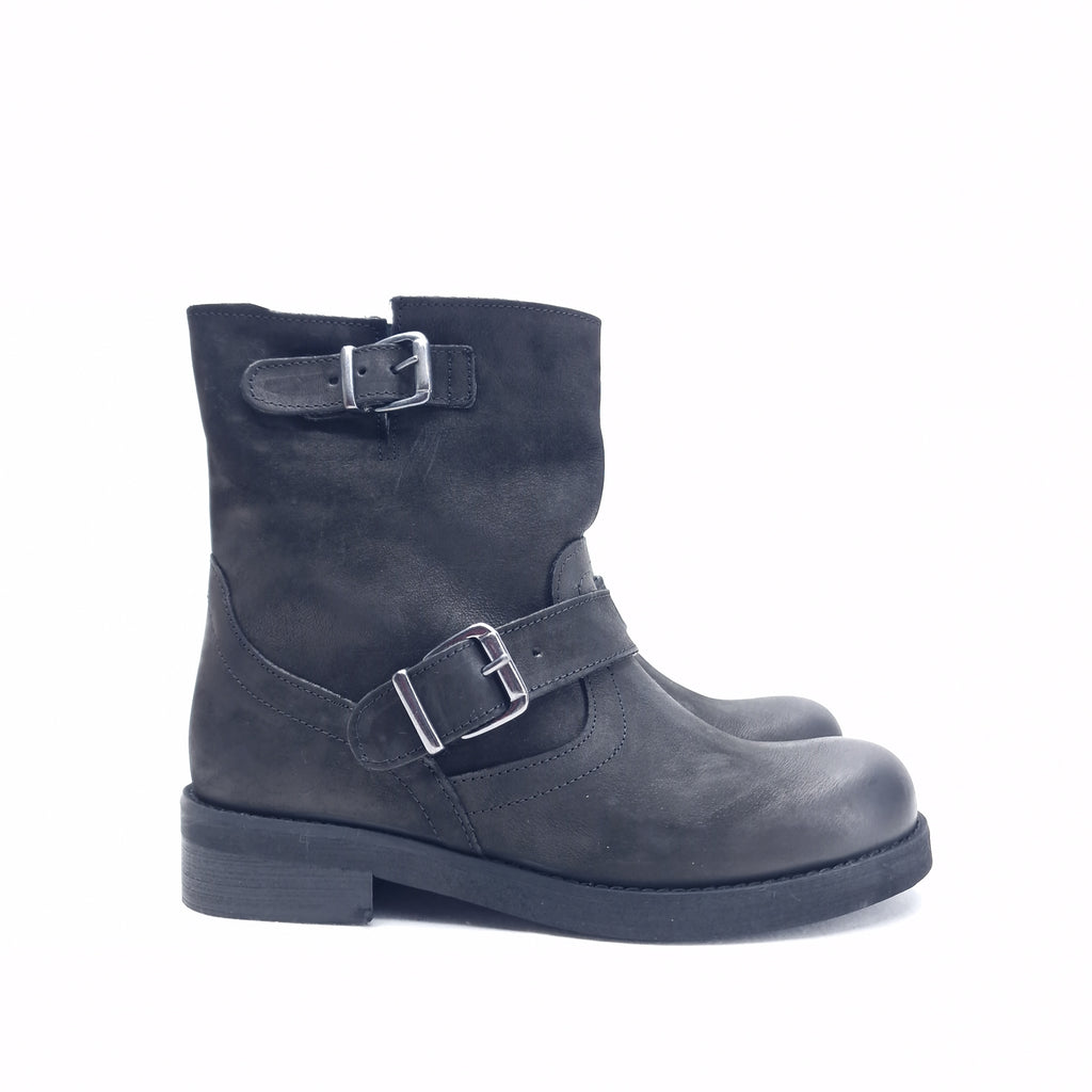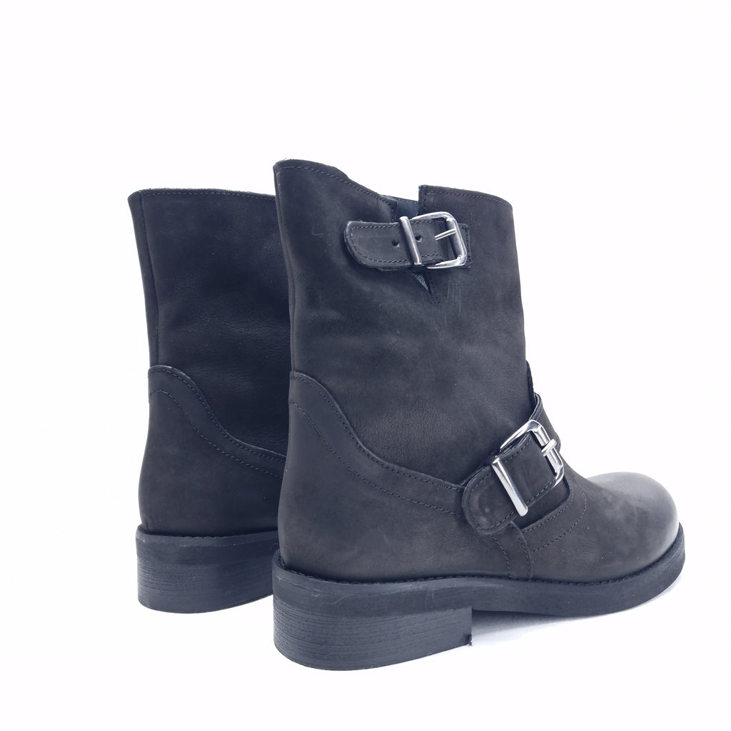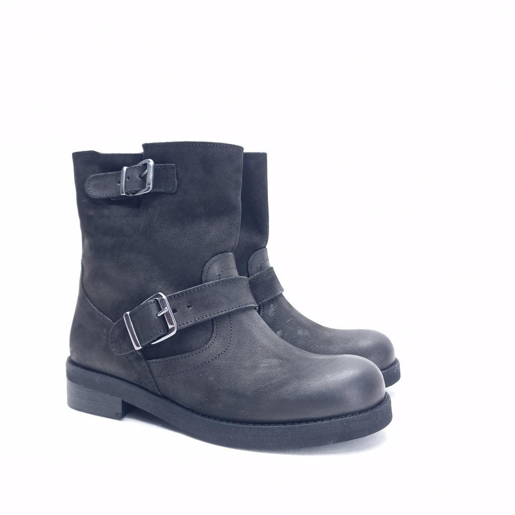 Biker alla caviglia in in nubuk spazzolato, vera pelle, prodotto realizzato interamente in Italia, calzata regolare