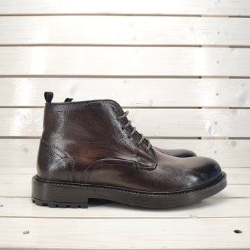 Anfibio stringato in vitello invecchiato esterno e vitello interno; suola in Gomma antiscivolo.