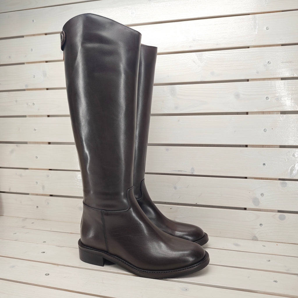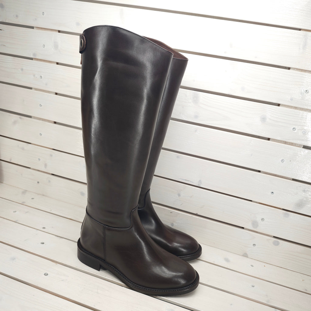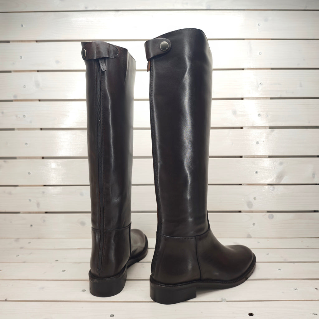 Stivale in vera e morbidissima pelle di vitello interna ed esterna con suola in gomma; con cerniera posteriore