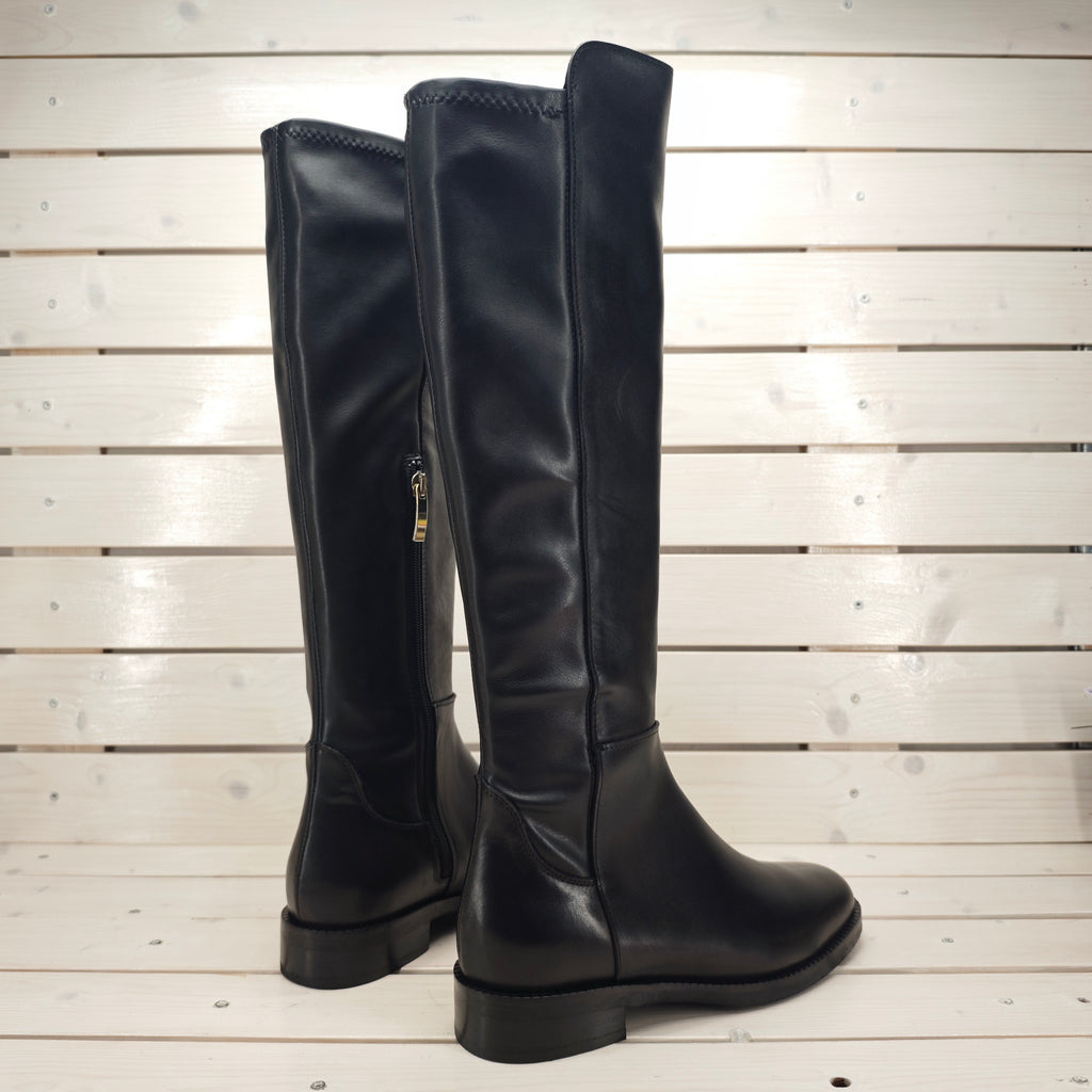 Stivale in vera pelle interna ed esterna con banda posteriore in alcantara elasticizzata