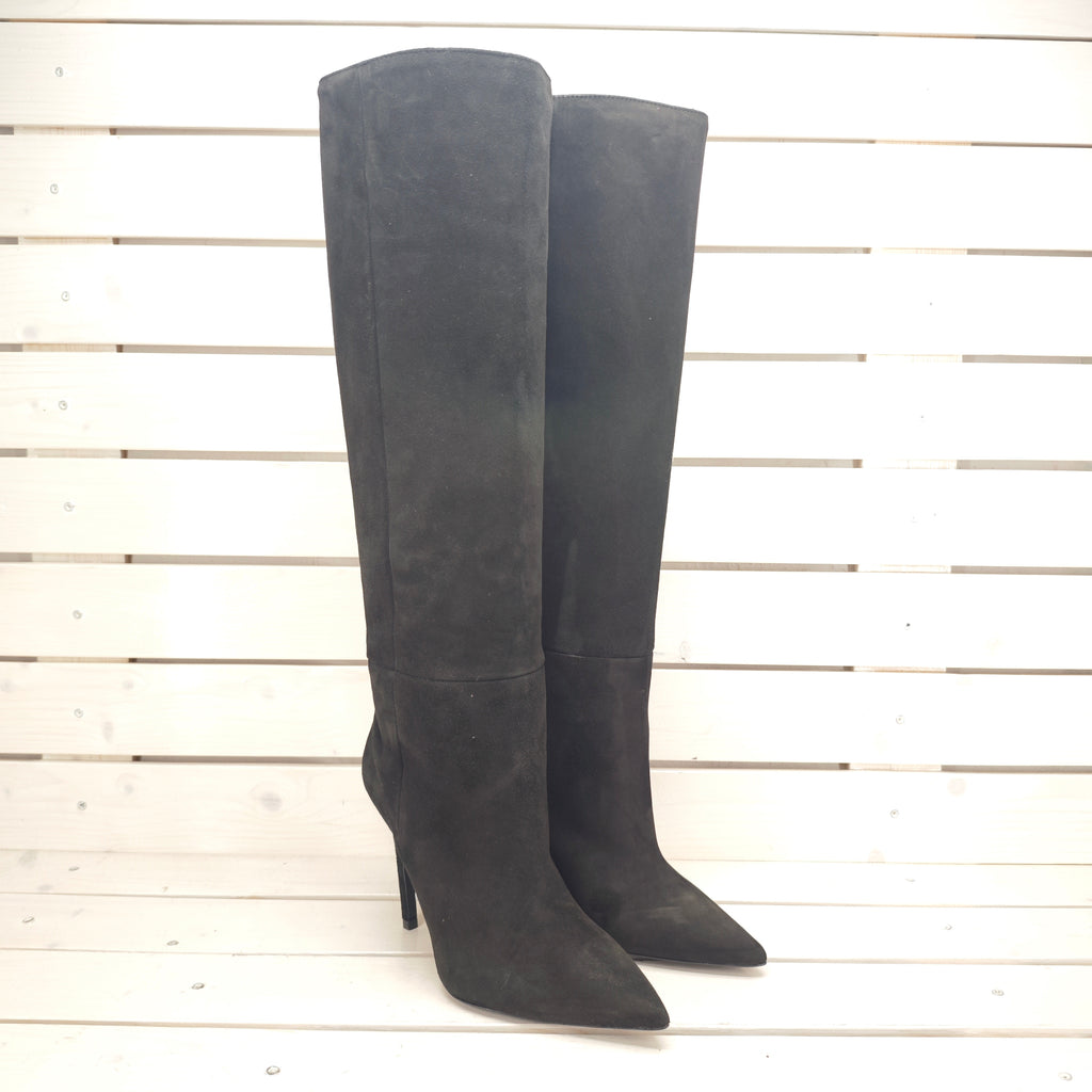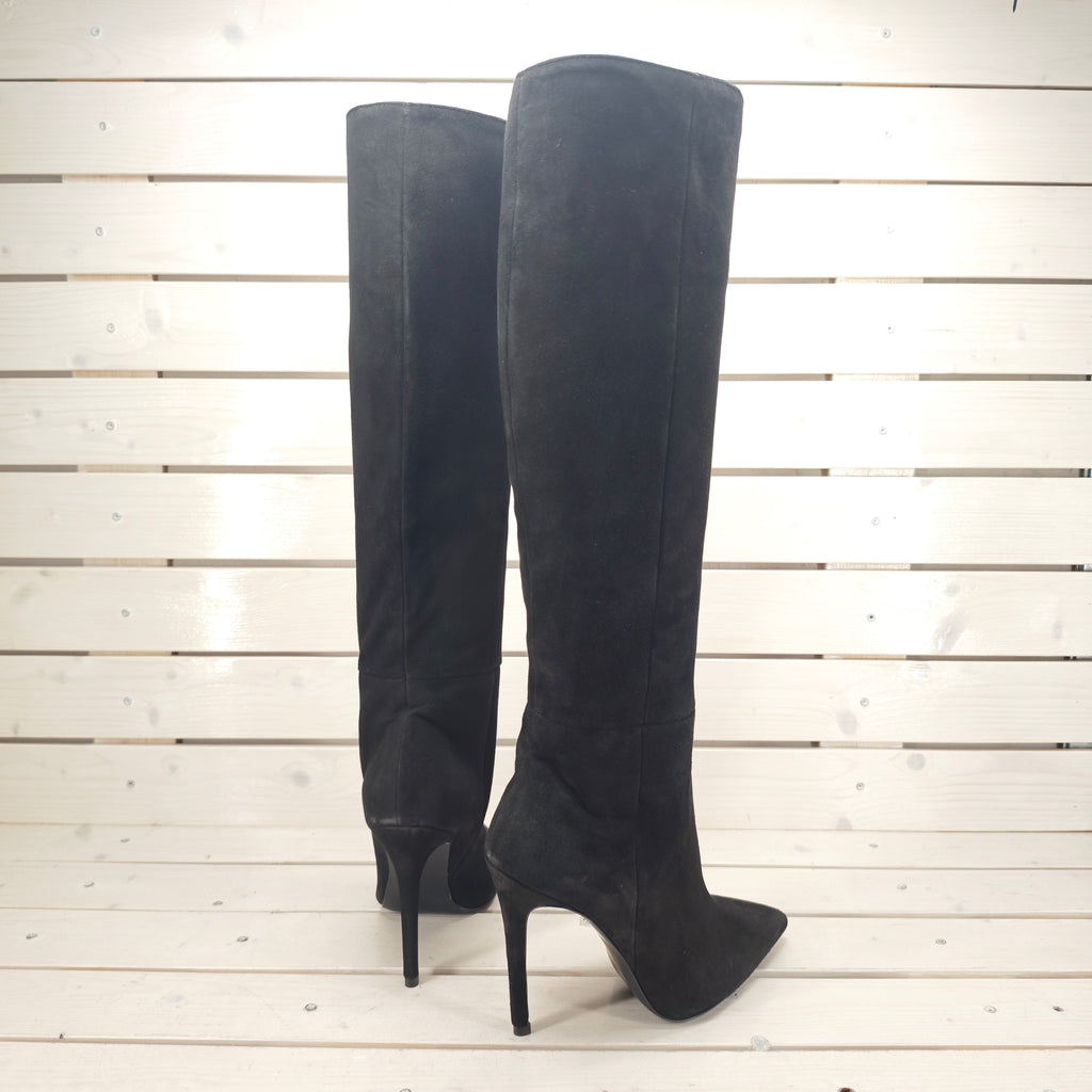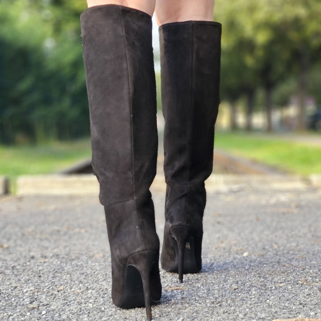 Stivale in vera pelle con altezza al ginocchio, tacco a spillo da 11 cm, calzata a tubo