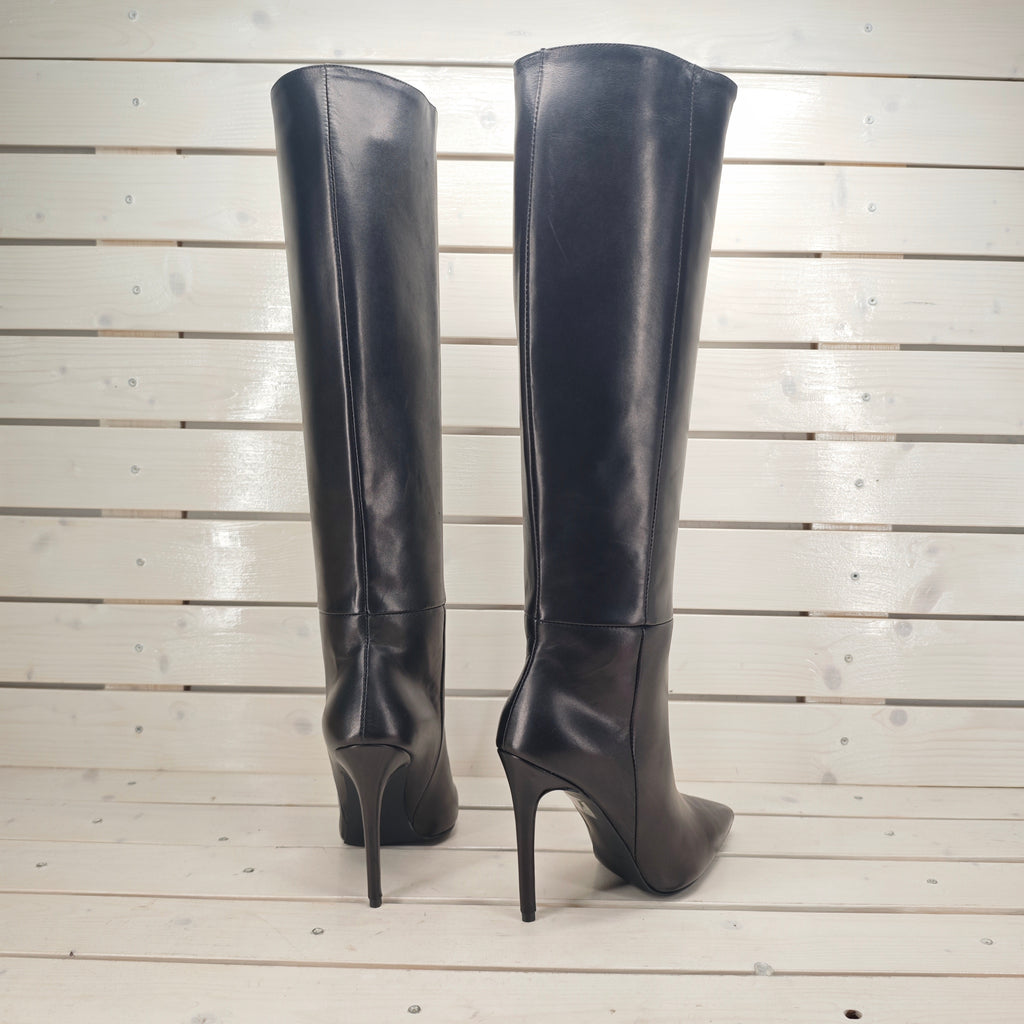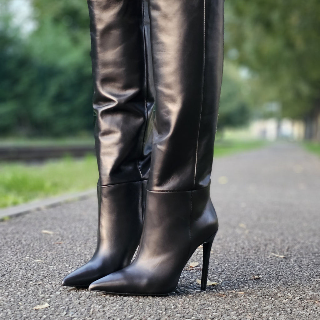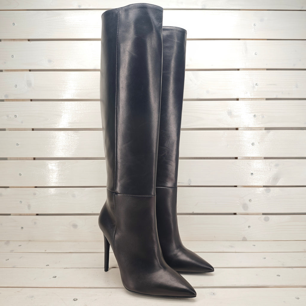 Stivale in vera pelle con tacco a spillo da 11cm, calzata regolare a tubo