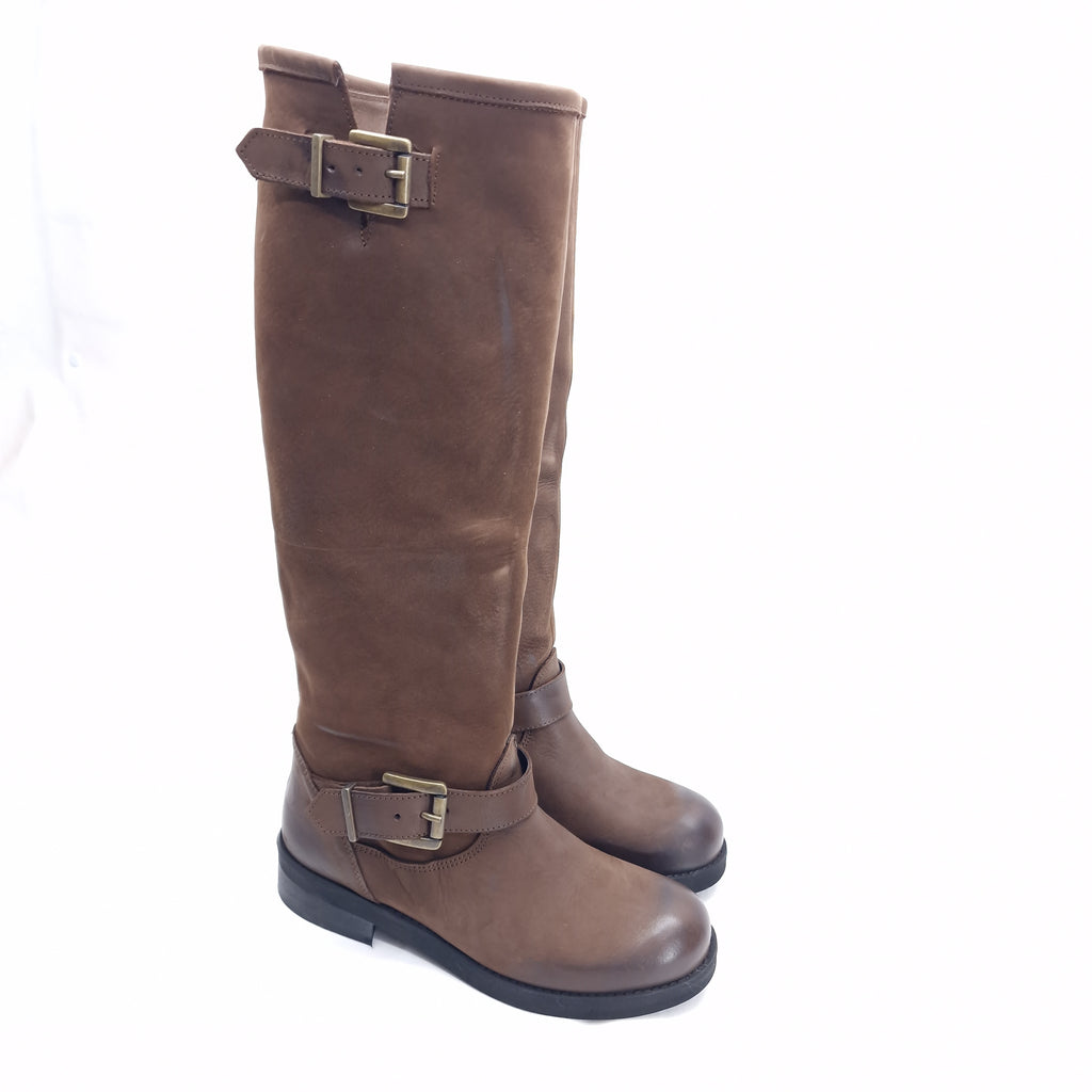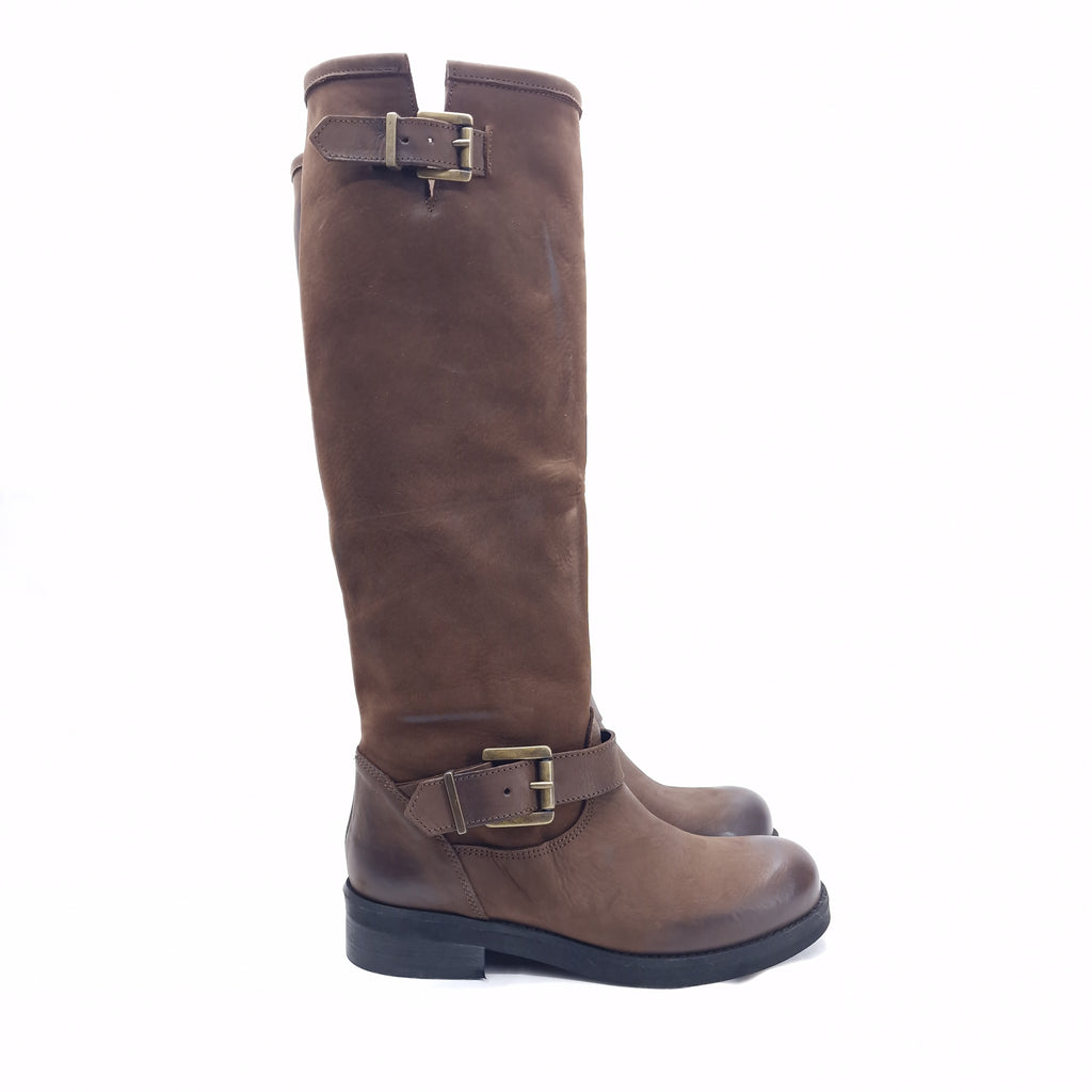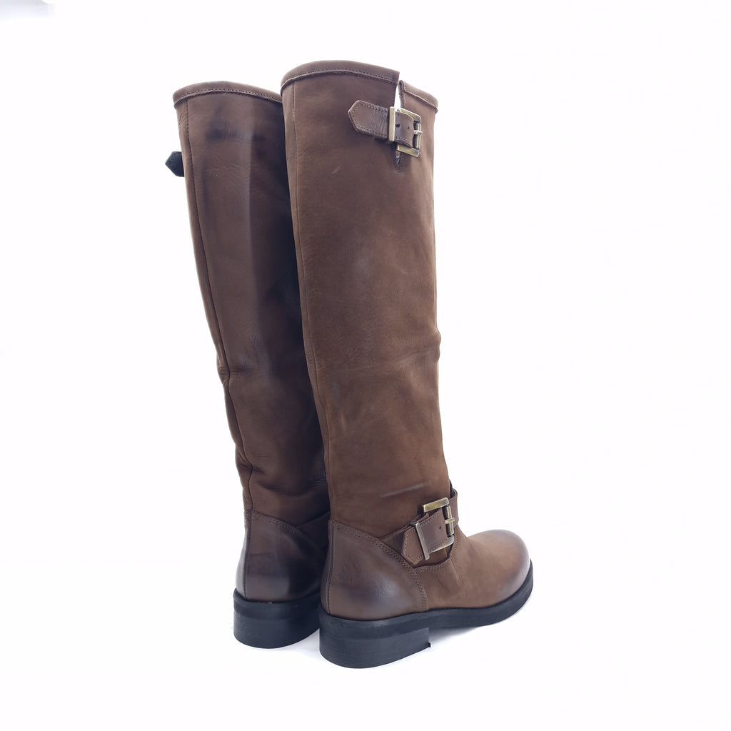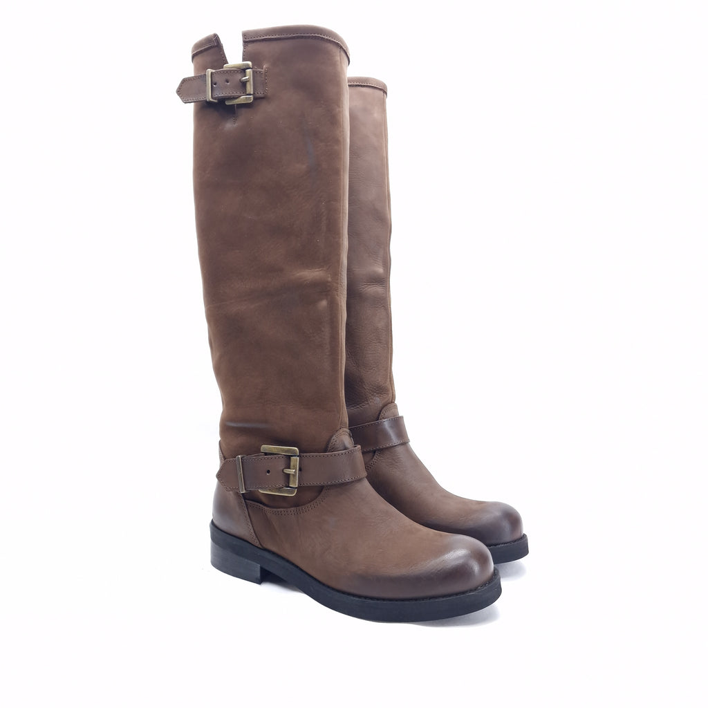 Biker al ginocchio in in nubuk spazzolato, vera pelle, prodotto realizzato interamente in Italia, calzata regolare