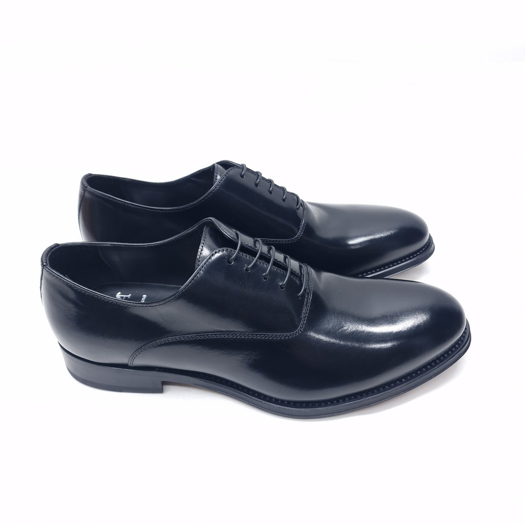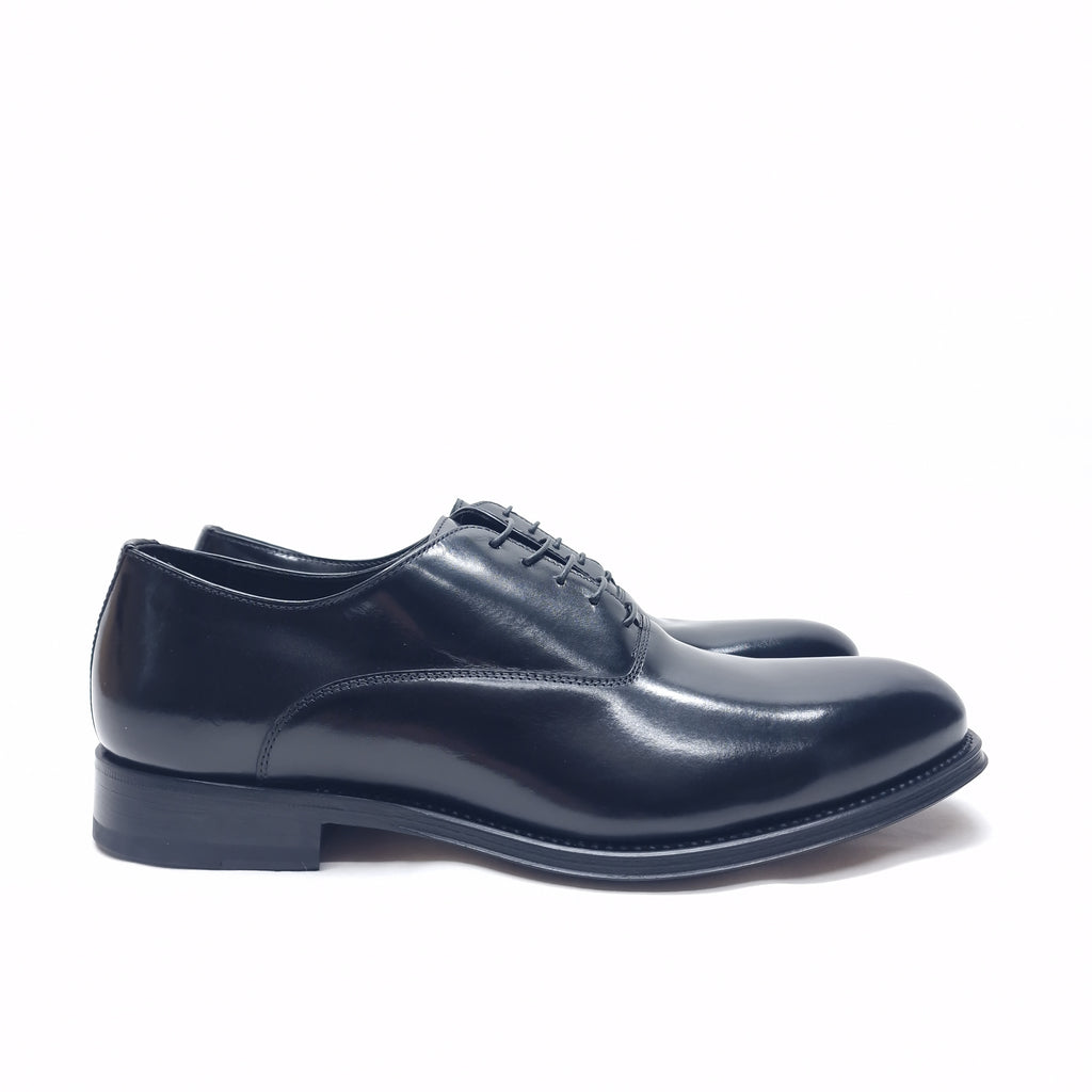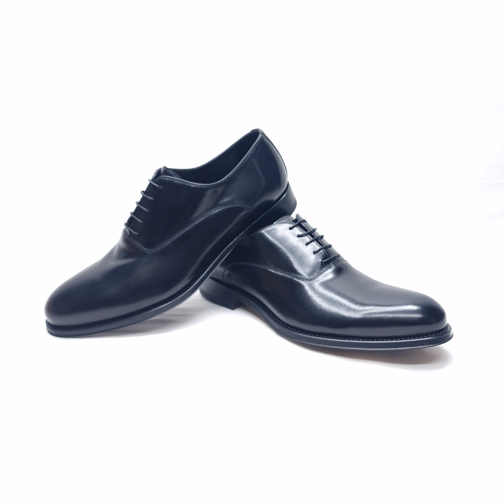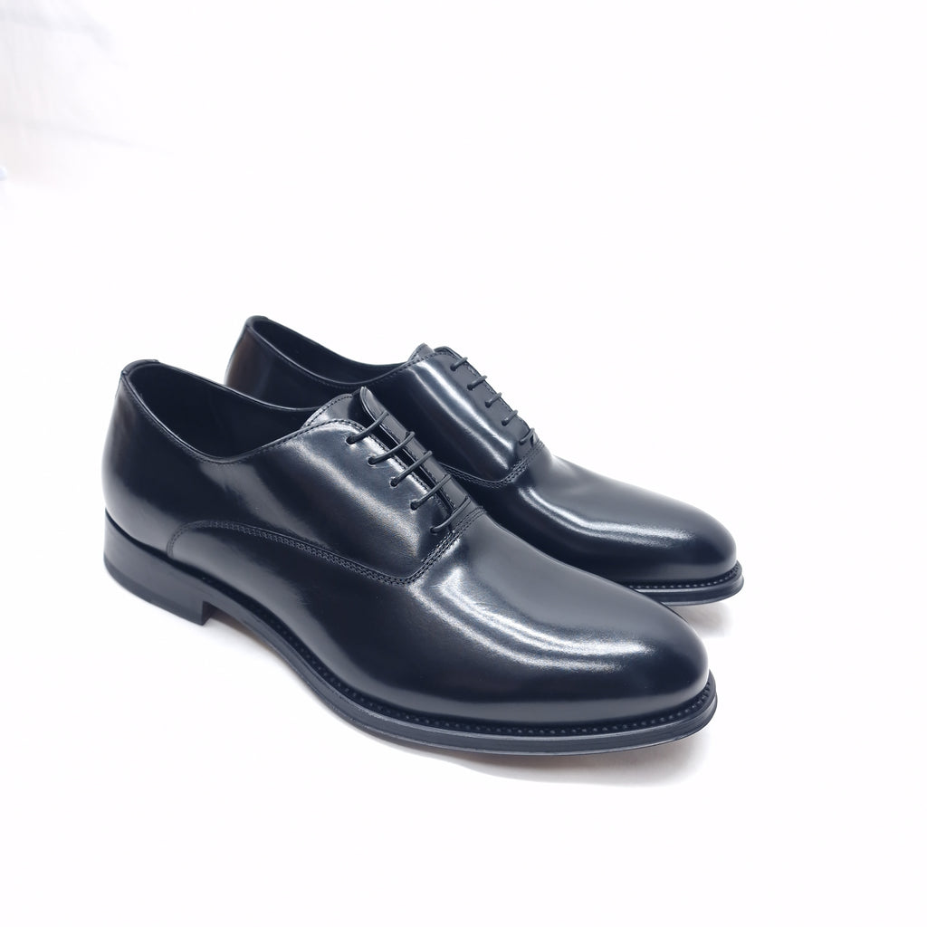 Francesina stringata liscia, in vitello esterno e vitello interno, completamente lavorata e cucita a mano nelle Marche, Italia.