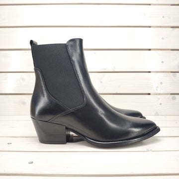 Texano, in vera pelle a taglio vivo con cerniera laterale e accessorio in punta; tacco da 4 cm