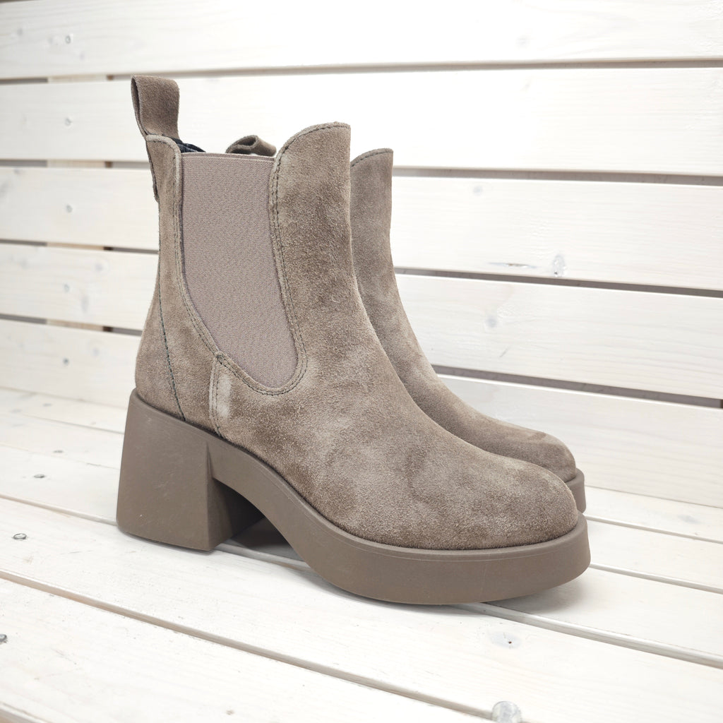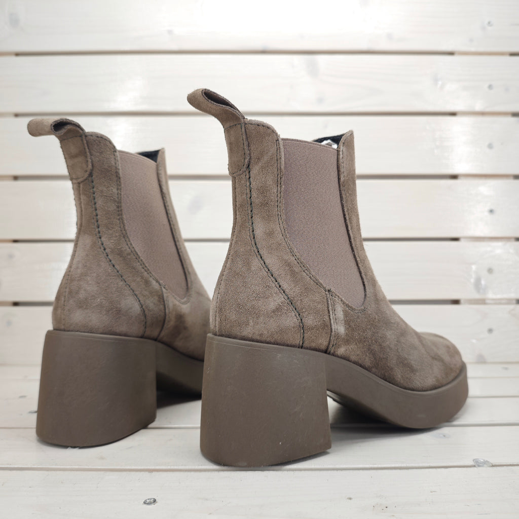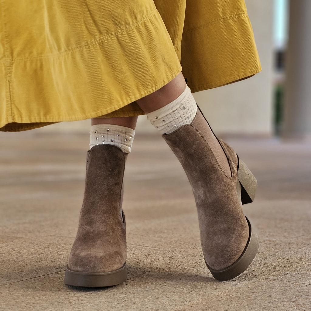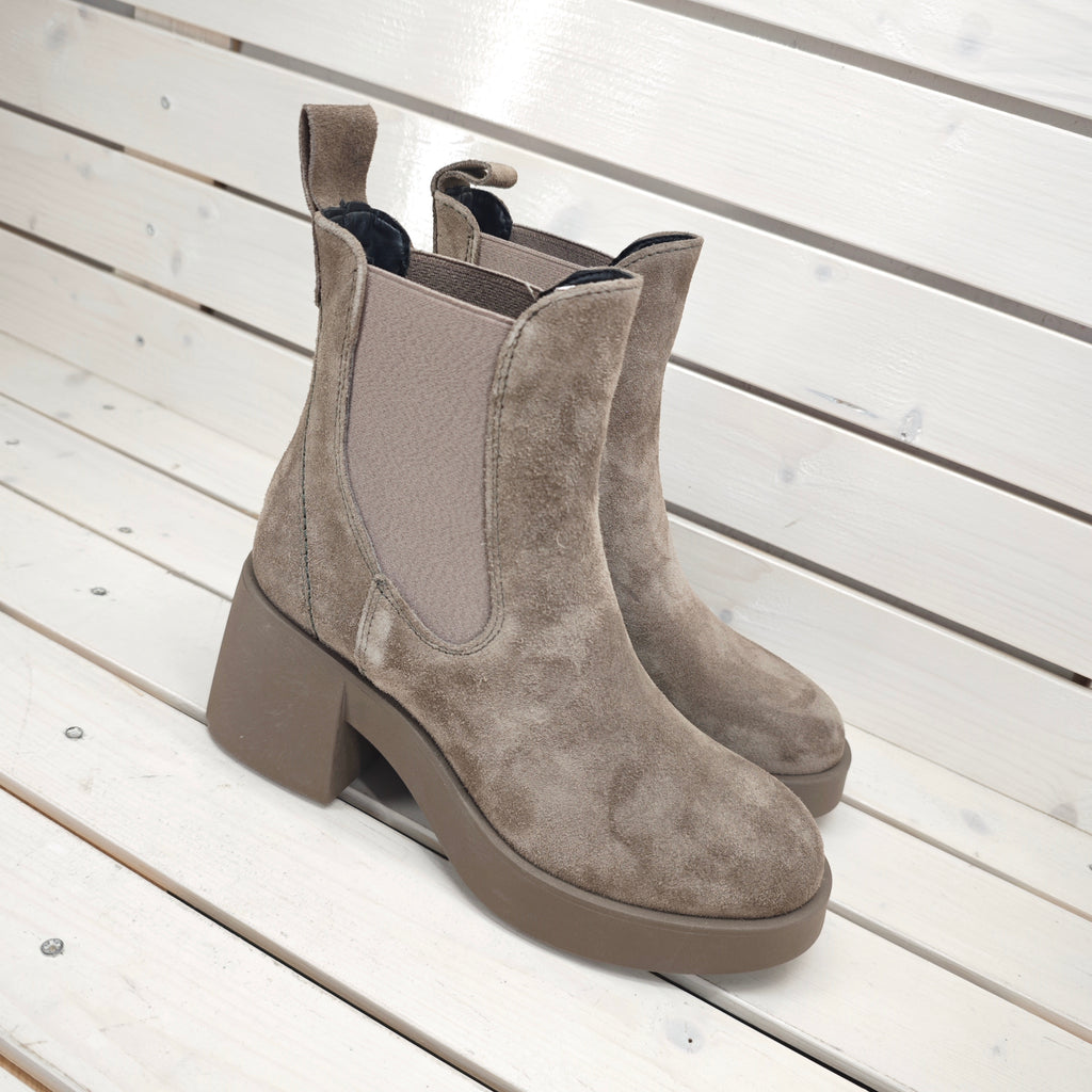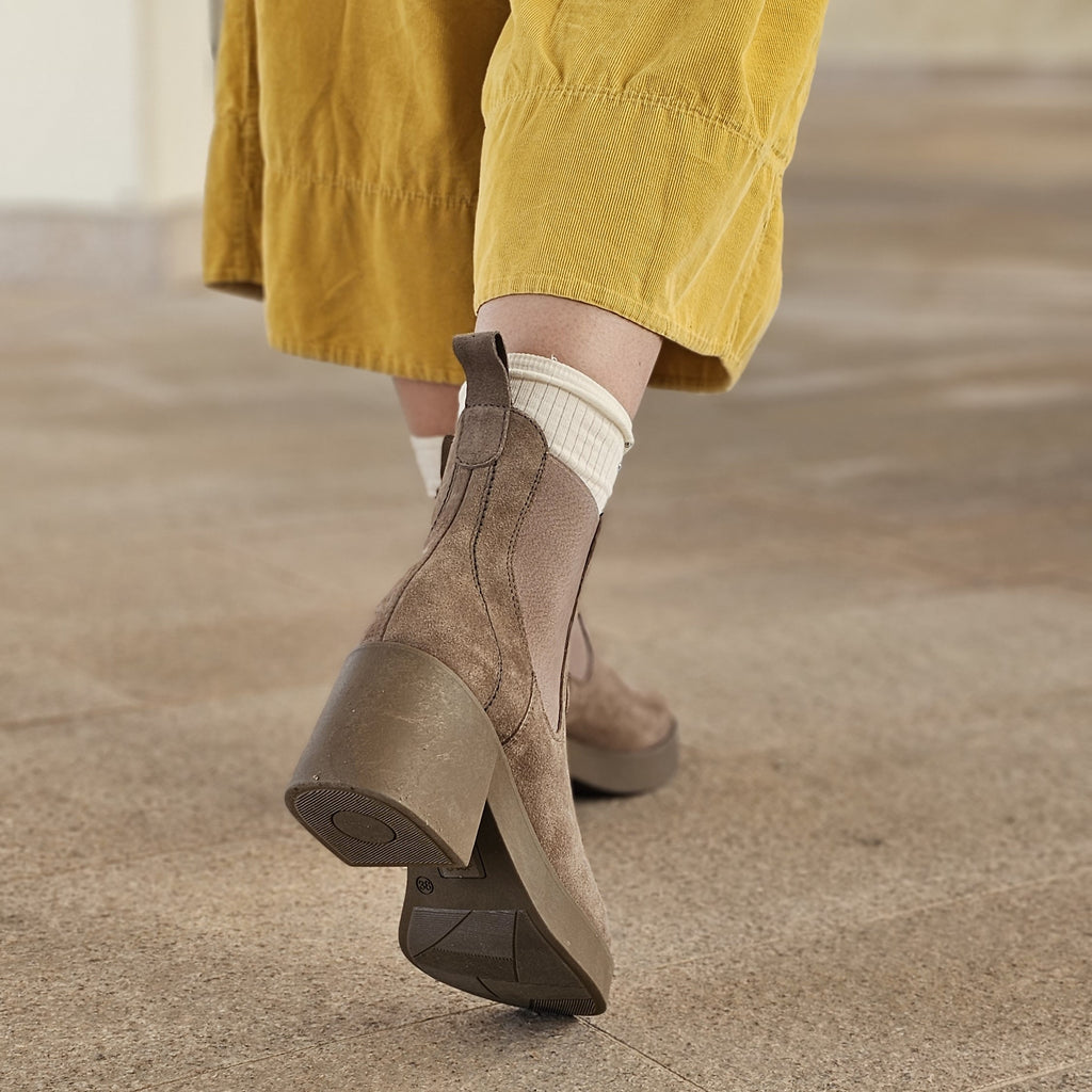 Stivaletto Beatles con elastici laterali, in vera pelle con gomma antiscivolo da 8 cm e plateau da 3; altezza percepita 5 cm